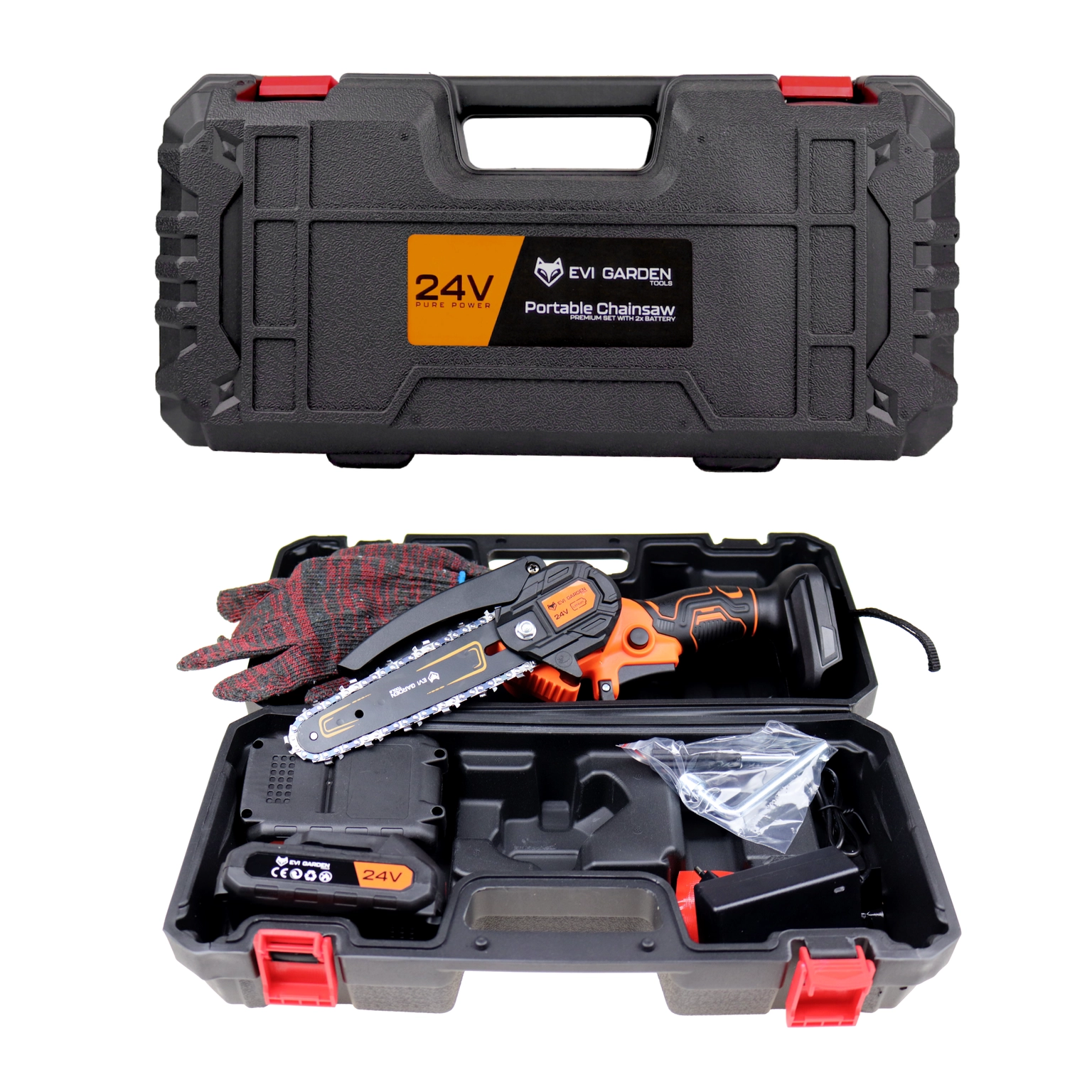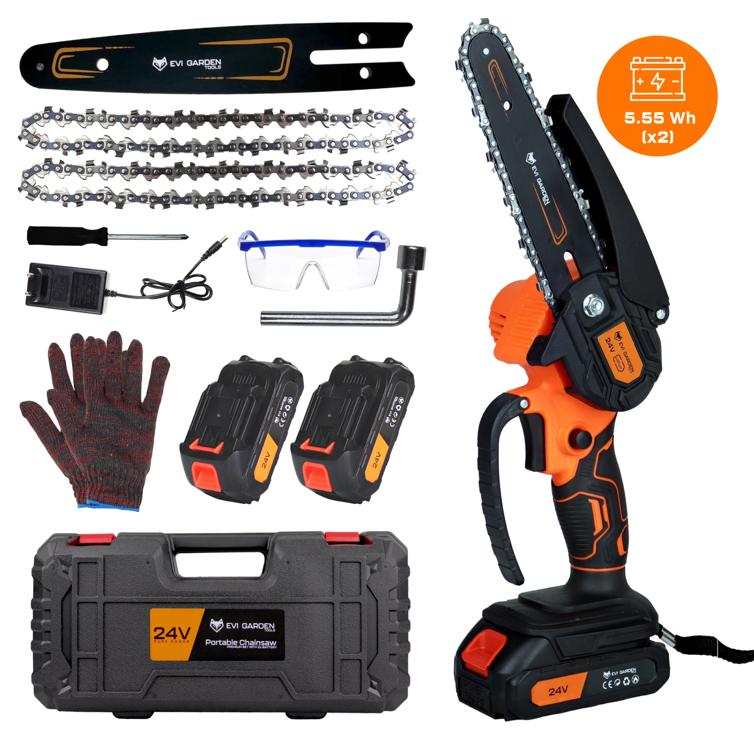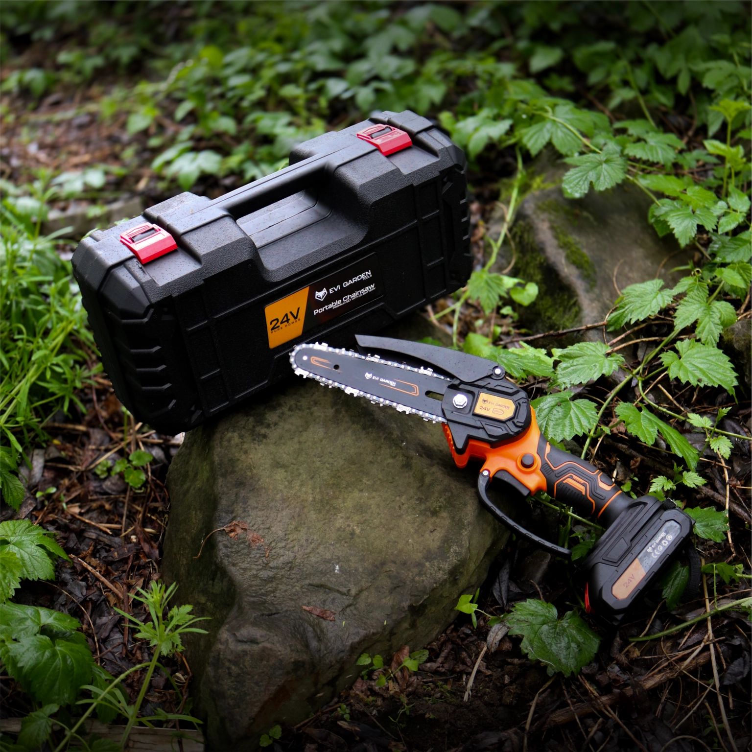 Představujeme EVI GARDEN Verde 1000 – kompaktní, ale výjimečně výkonnou řetězovou pilu, díky které se práce na zahradě stanou rychlejší a pohodlnější. Vybavena moderním bezuhlíkovým motorem s výkonem až 1000 W a dvěma 24V bateriemi nabízí vysoký výkon a dlouhou dobu provozu. Díky 6palcové liště a kalenému řetězu je nástroj ideální pro prořezávání stromů, větví, keřů nebo řezání palivového dřeva. Robustní konstrukce, snadná obsluha a kompaktní rozměry z ní činí spolehlivého partnera pro zahradní a domácí úkoly.