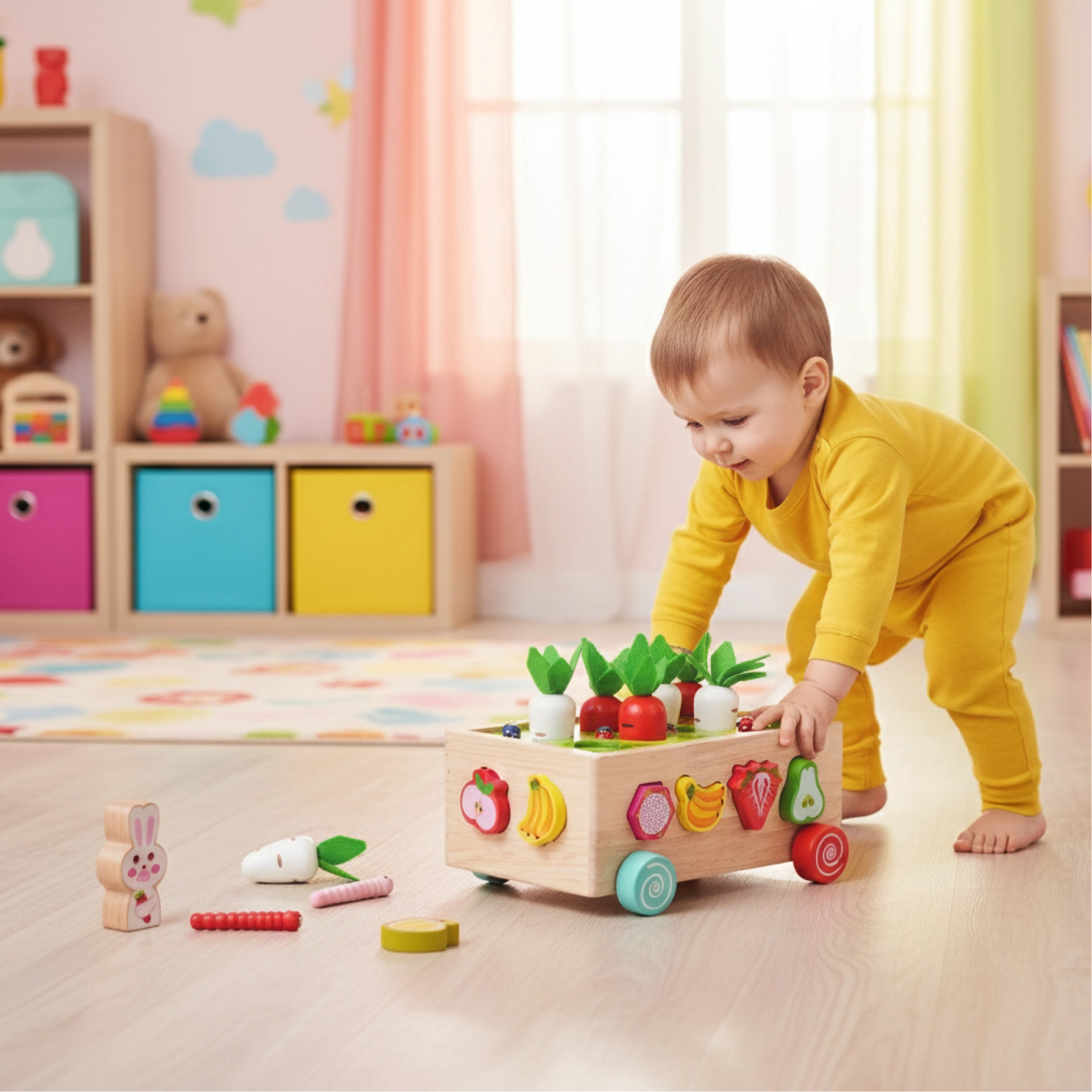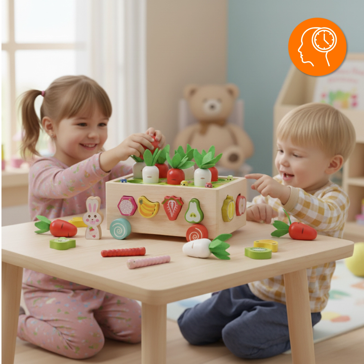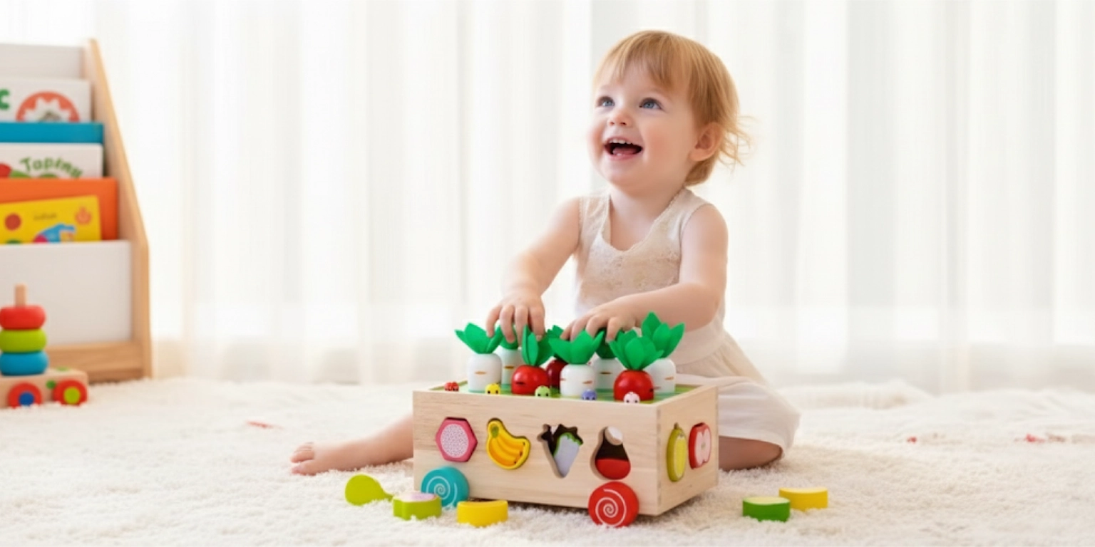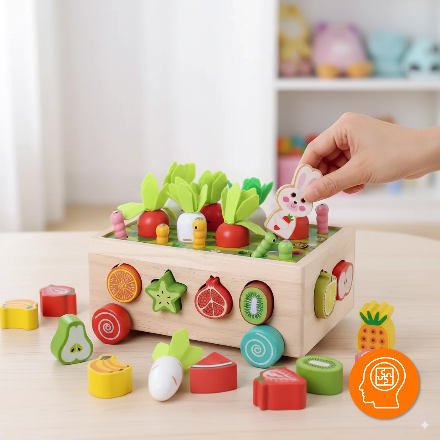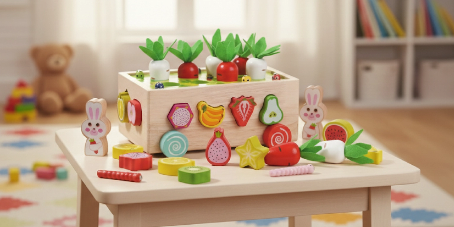 ☑️ Rozvíjí motorickou koordinaci – chytání mrkviček a robáčků je tréninkem malých ručiček.