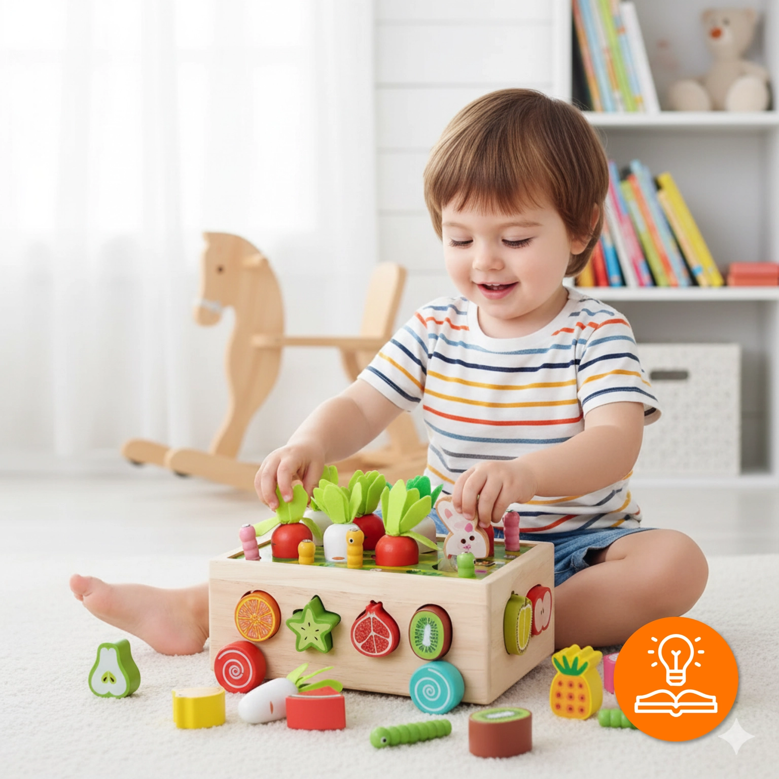 ☑️ Procvičuje kognitivní schopnosti – rozlišování tvarů, barev a ovoce.