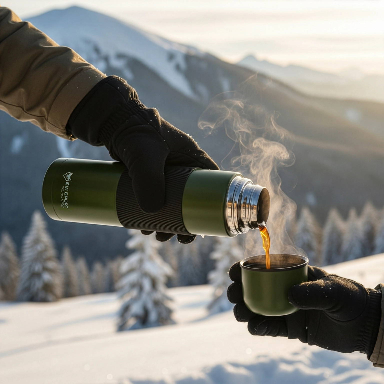 Turistická termoska – horké a studené nápoje vždy po ruce | EVI SPORT – NOMAD PRO ARMY GREEN 1L