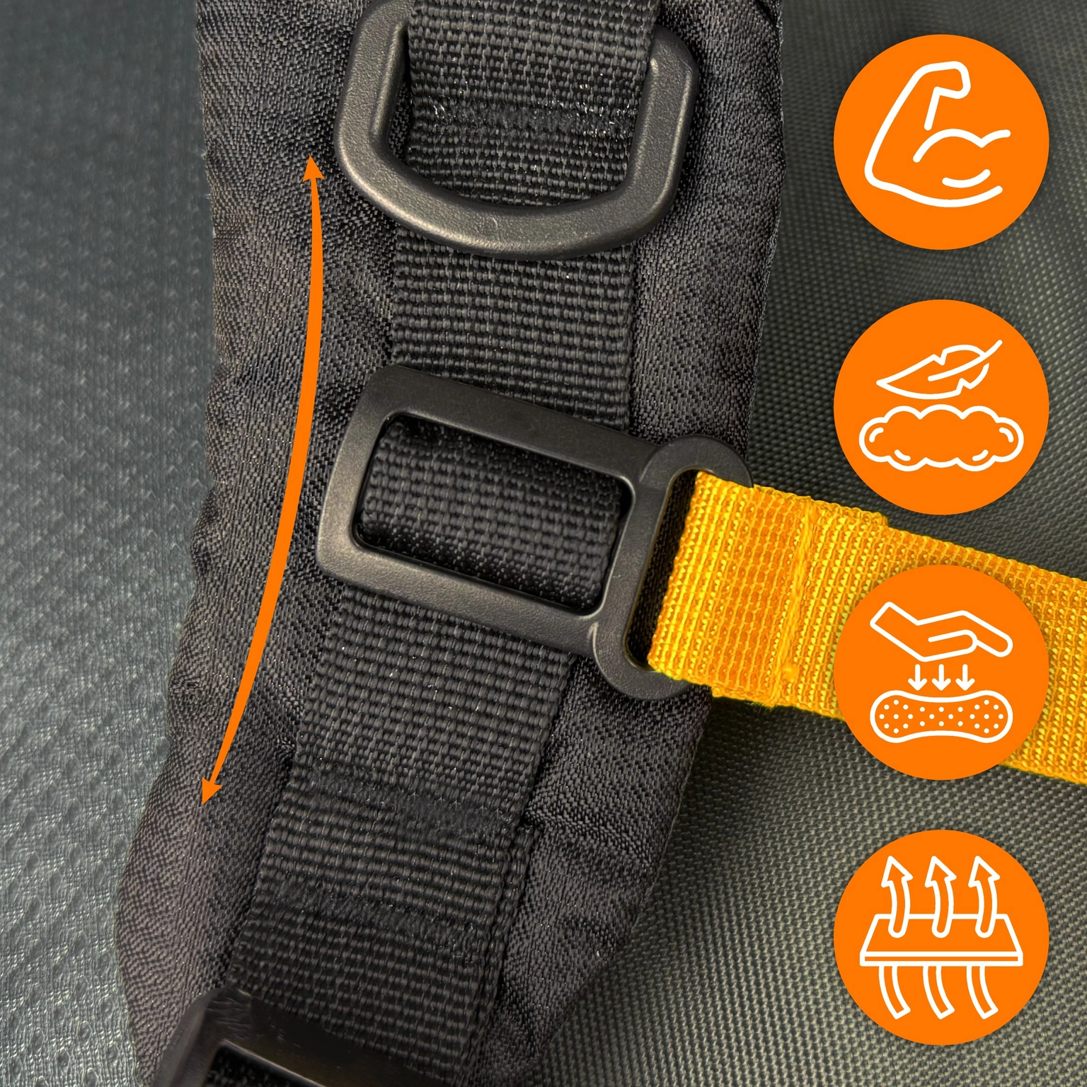 ✔️ Nosný systém: odvětrávání zad, nastavitelný hrudní a bederní pás