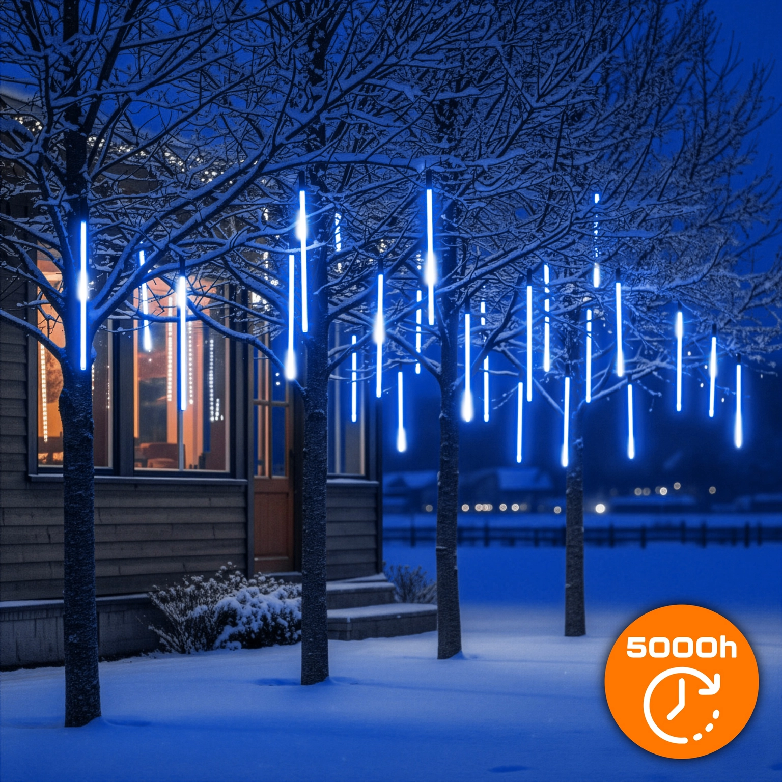 ☑️ Efekt padajících meteorů – dynamický a realistický, vytvářející iluzi padajícího sněhu.