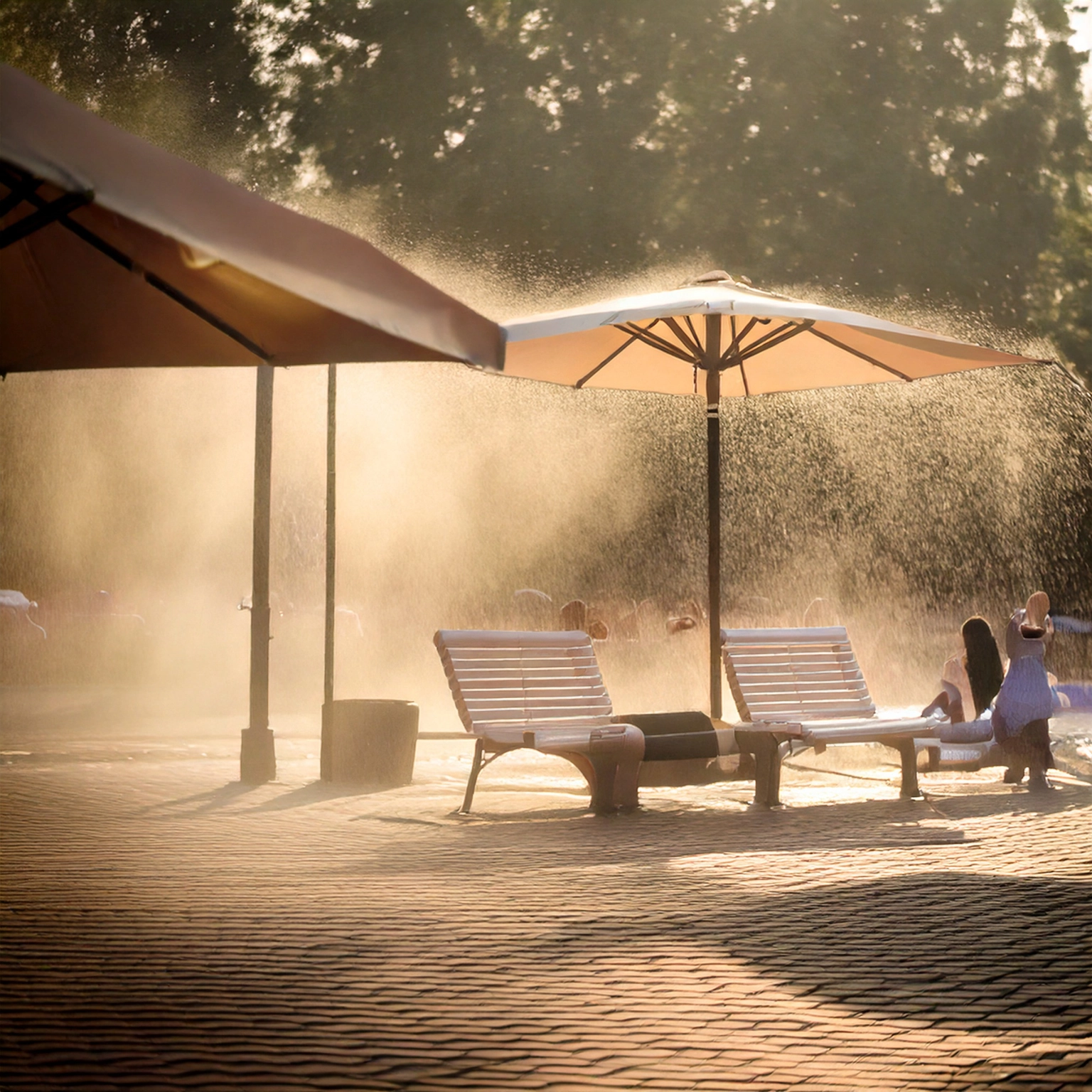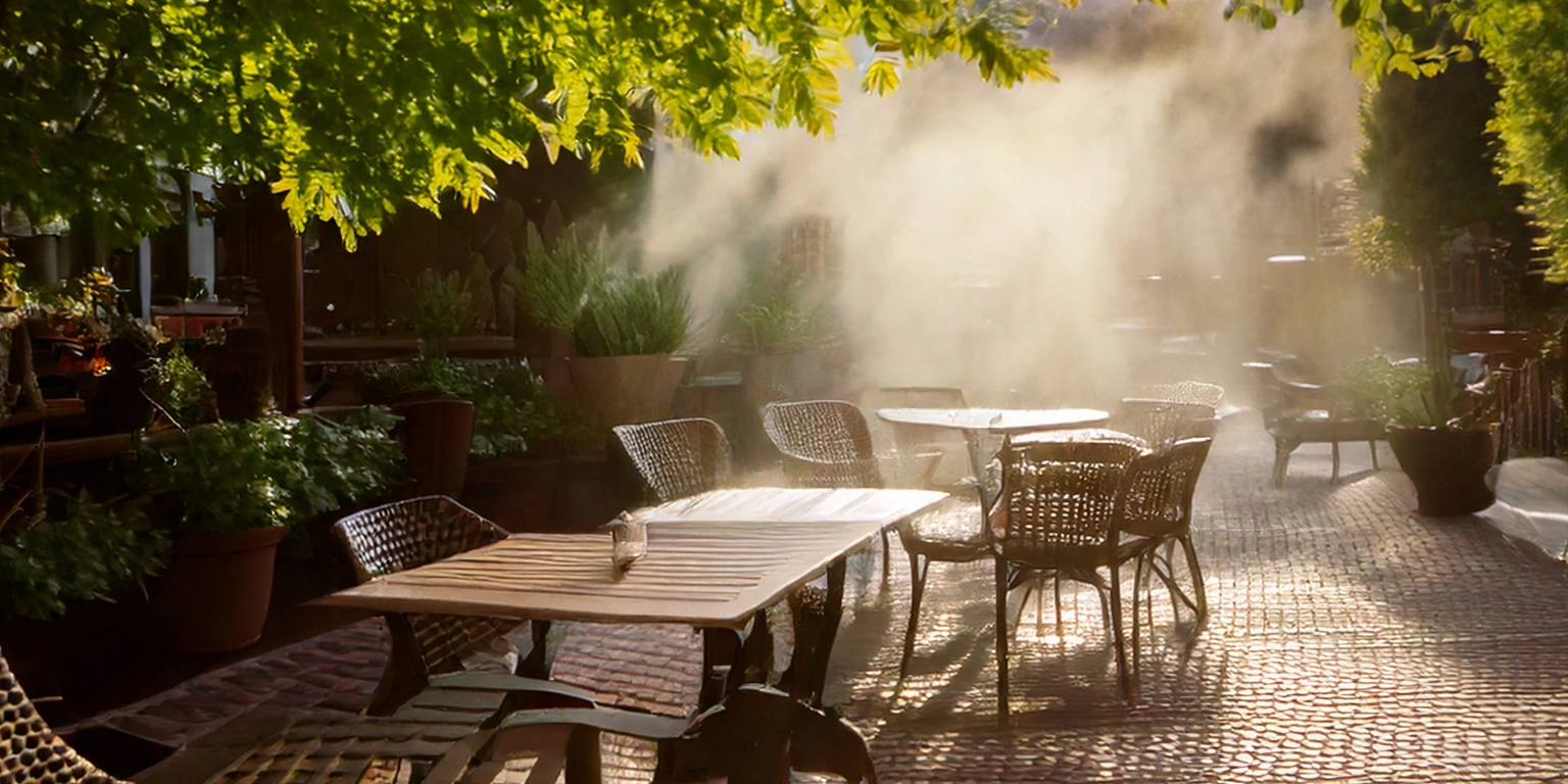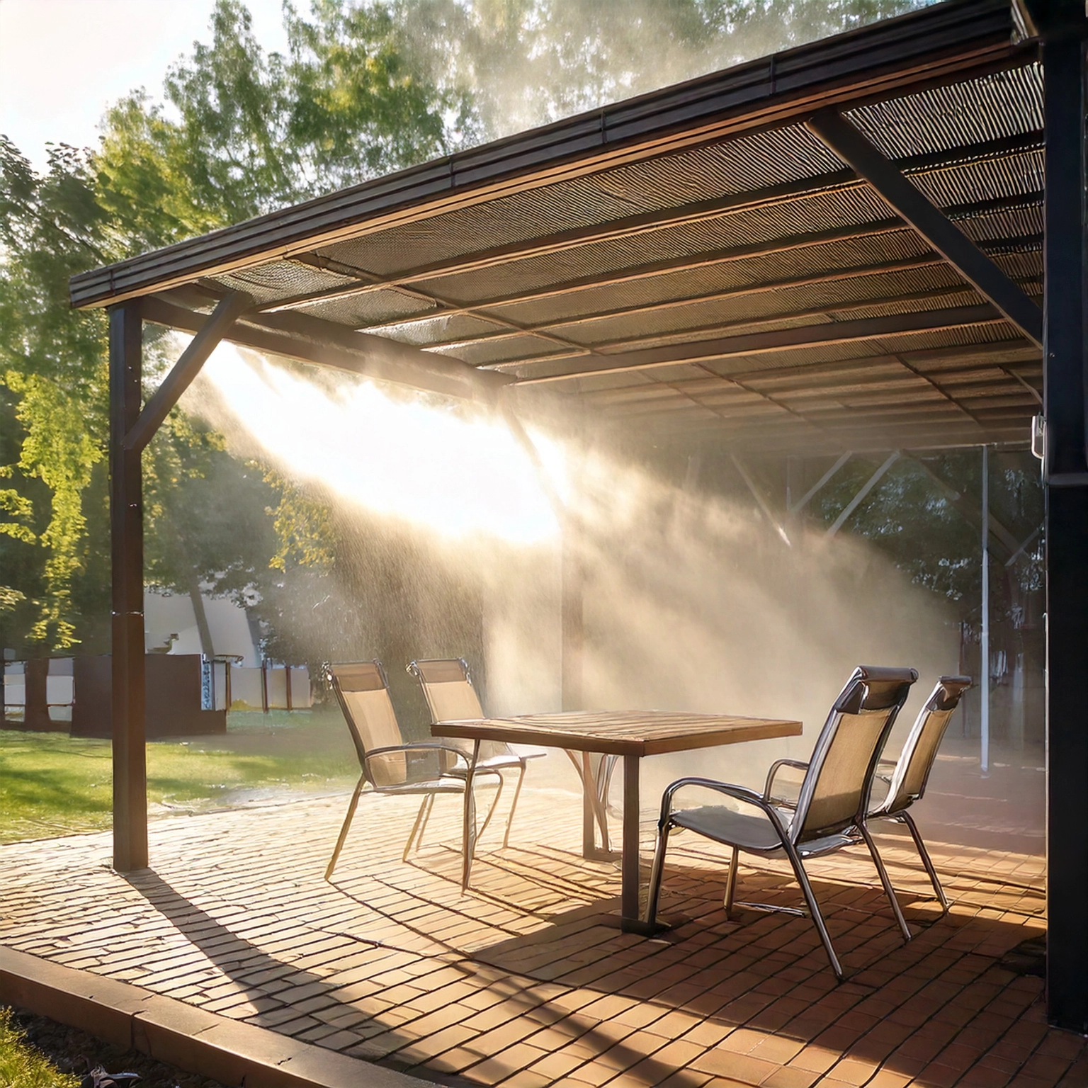 ☑️ Patio a terasa – jemná mlha snižující teplotu.
