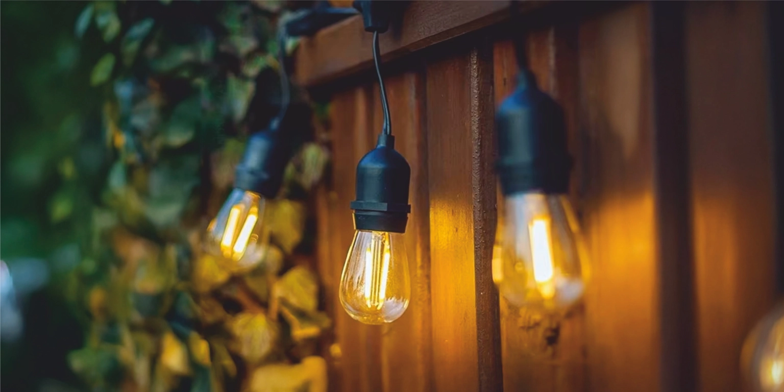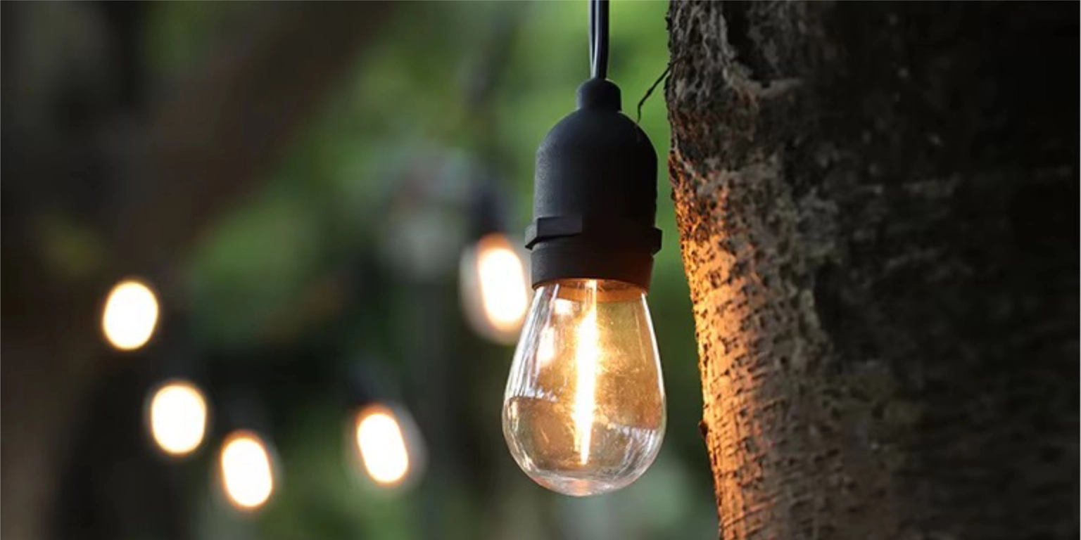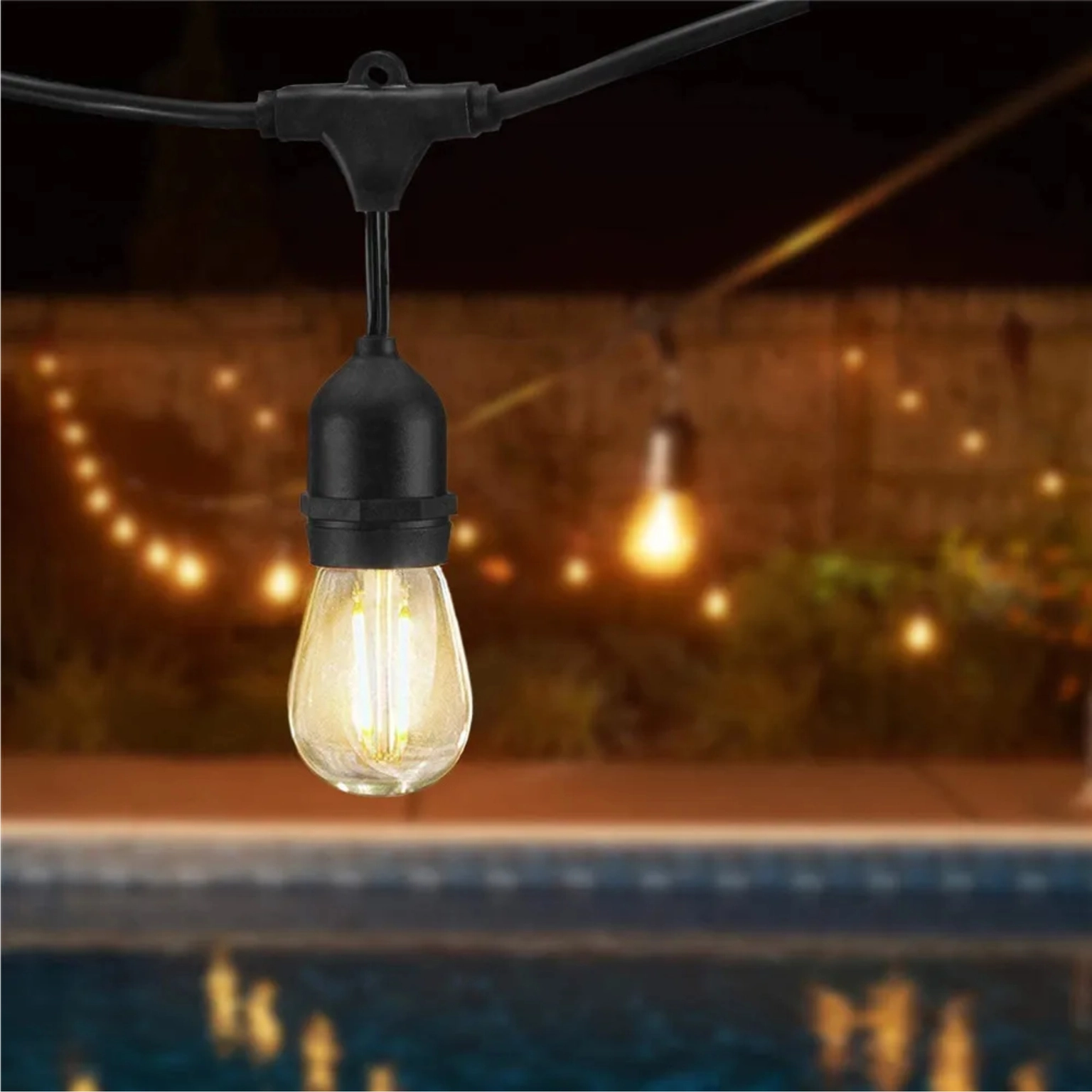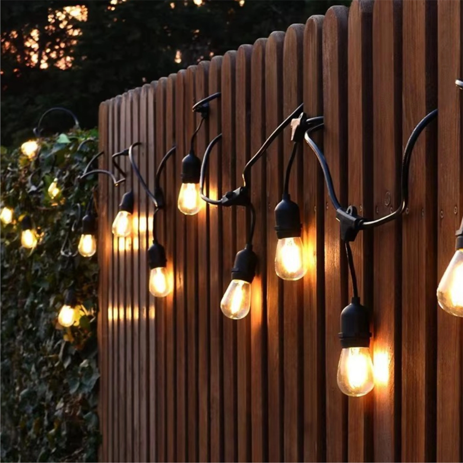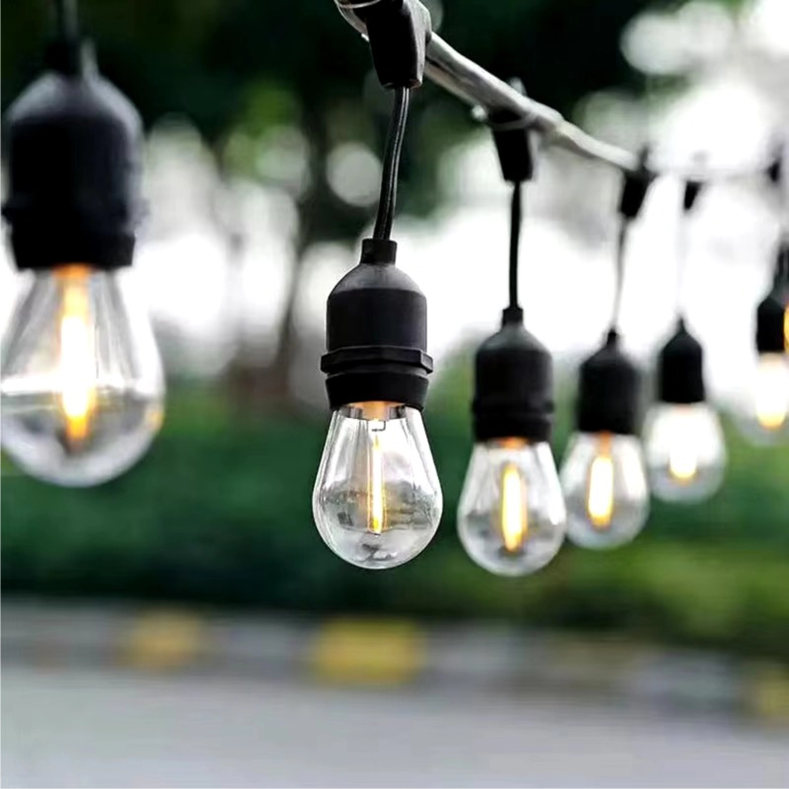 ✔ Světelnou girlandu o délce 20 m s paticemi E27 (možnost použití jako dvě nezávislé girlandy po 10 m každá)
