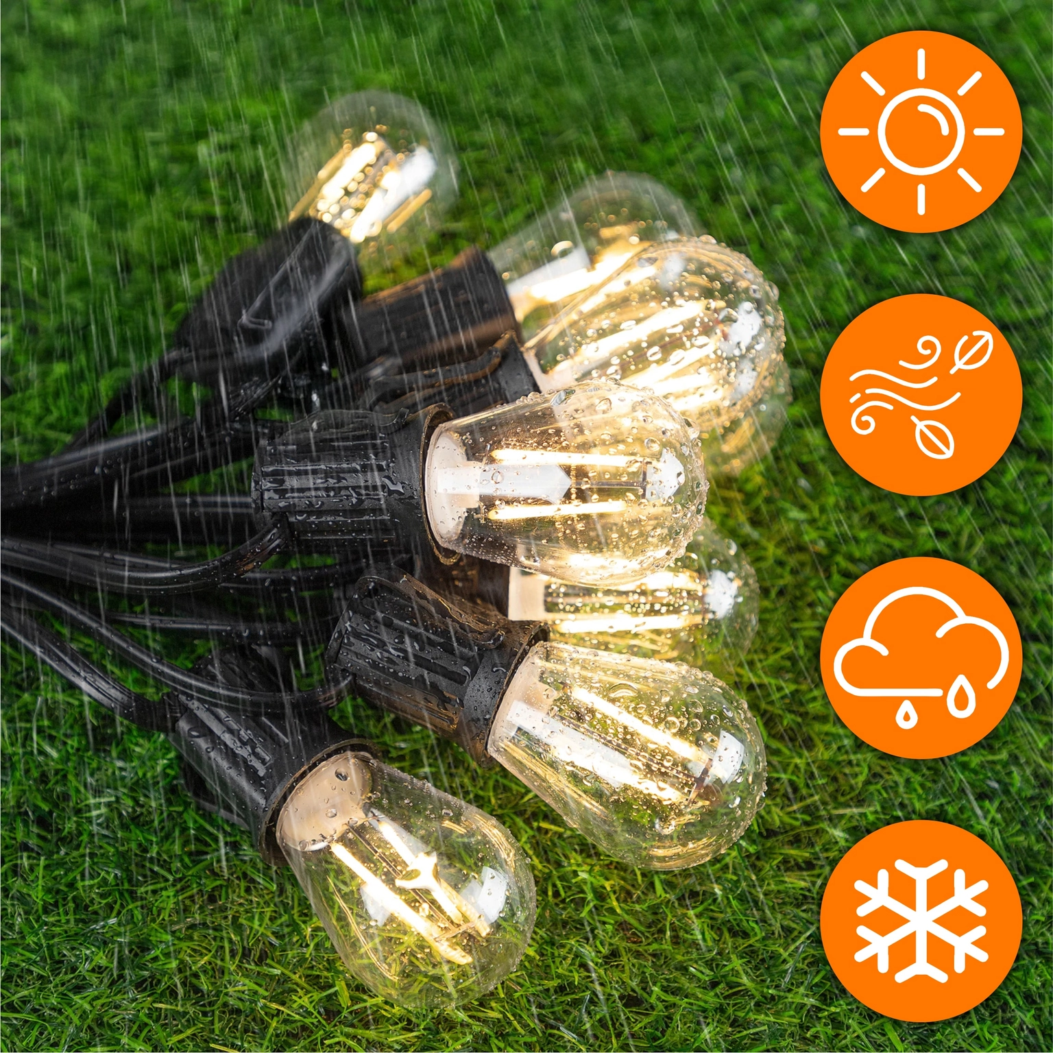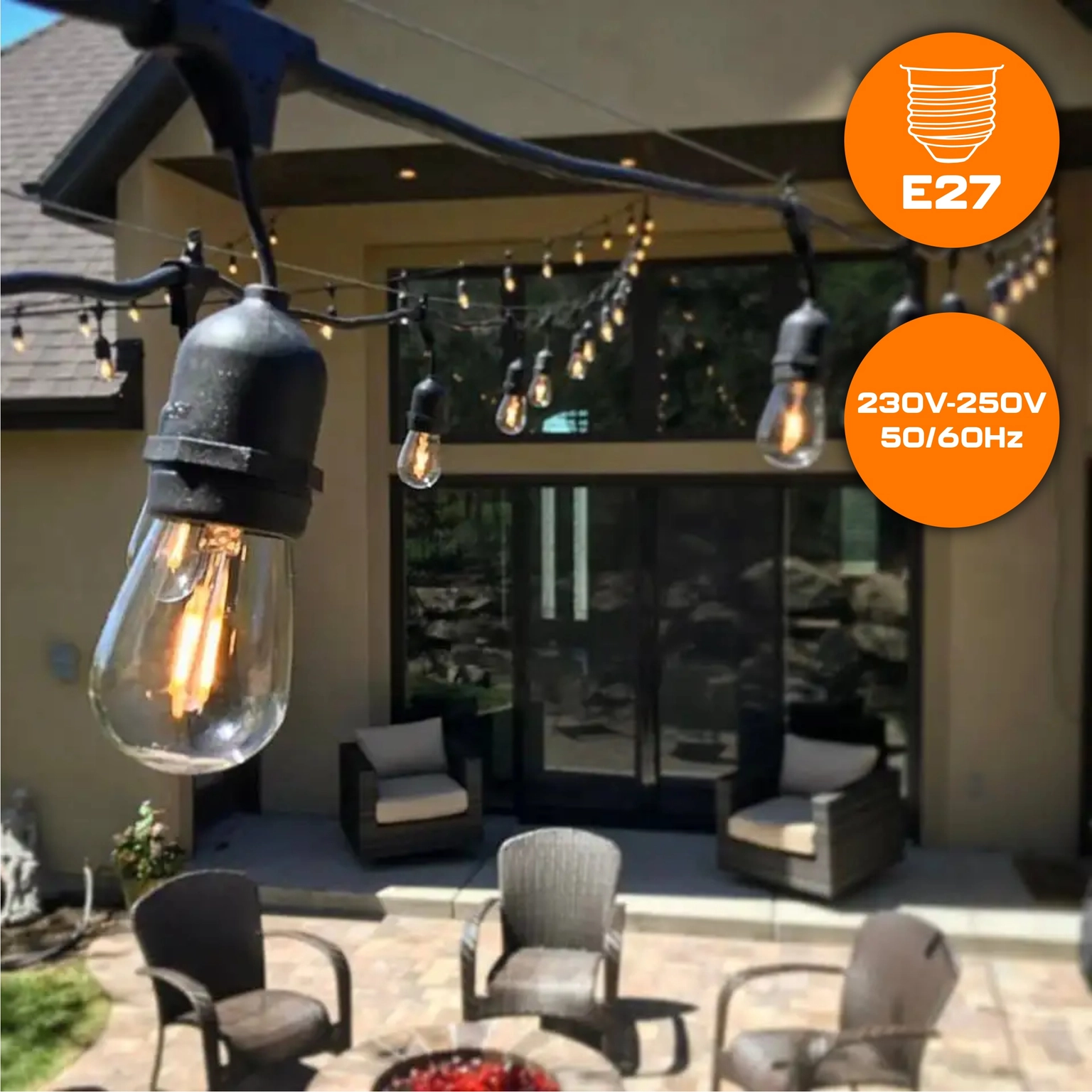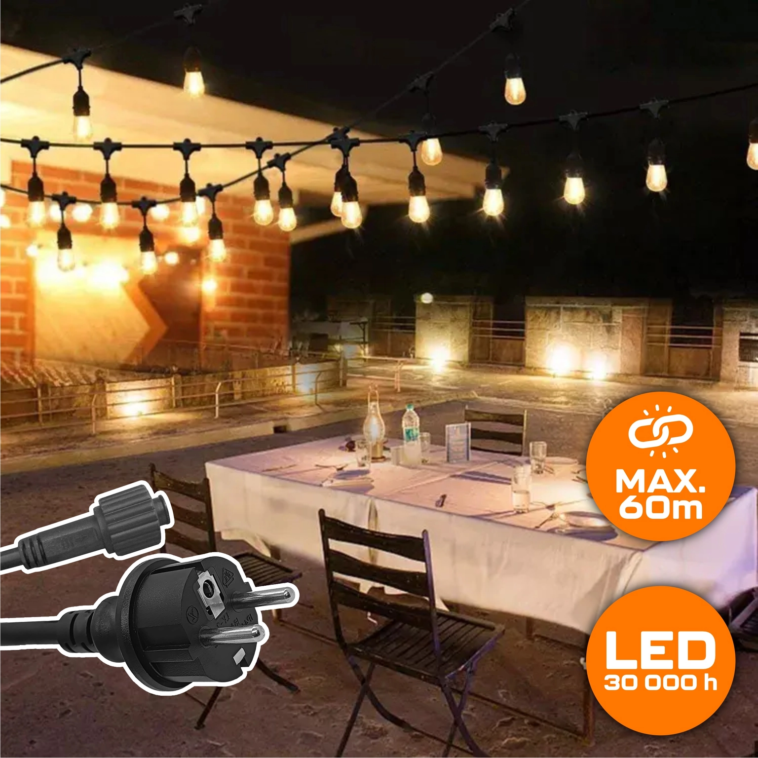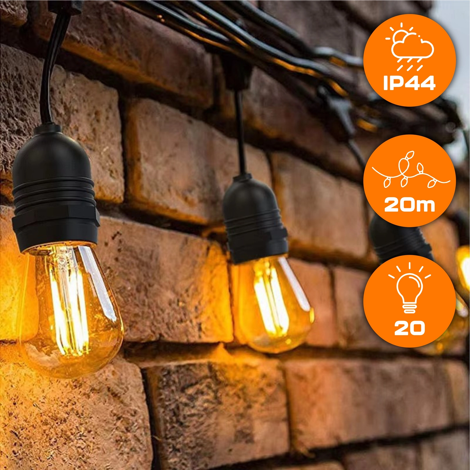 Zahradní světelný řetěz 20 m s LED žárovkami E27 – vodotěsný světelný řetěz až do 60 m | EVI GARDEN