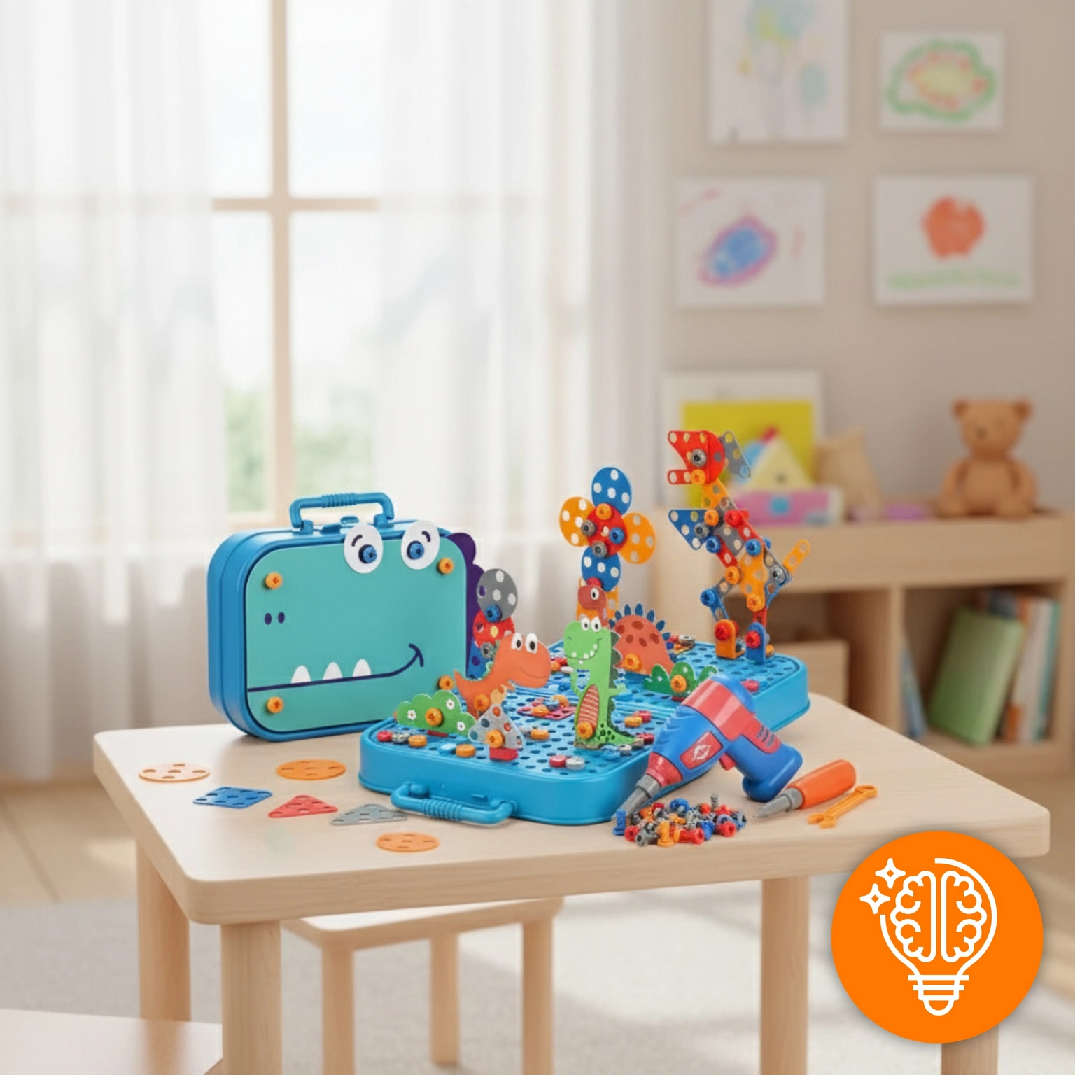 Does your child love to tinker and create their own projects? The EVI TOYS – DINO set is a unique construction toy that develops manual skills, creativity, and hand-eye coordination. Thanks to the included electric screwdriver, your little one can screw together colorful elements and create dinosaurs, mosaics, or fantasy shapes. This is an ideal proposition for young engineers who learn through play. The suitcase with a screwing panel allows for storing parts and maintaining order.