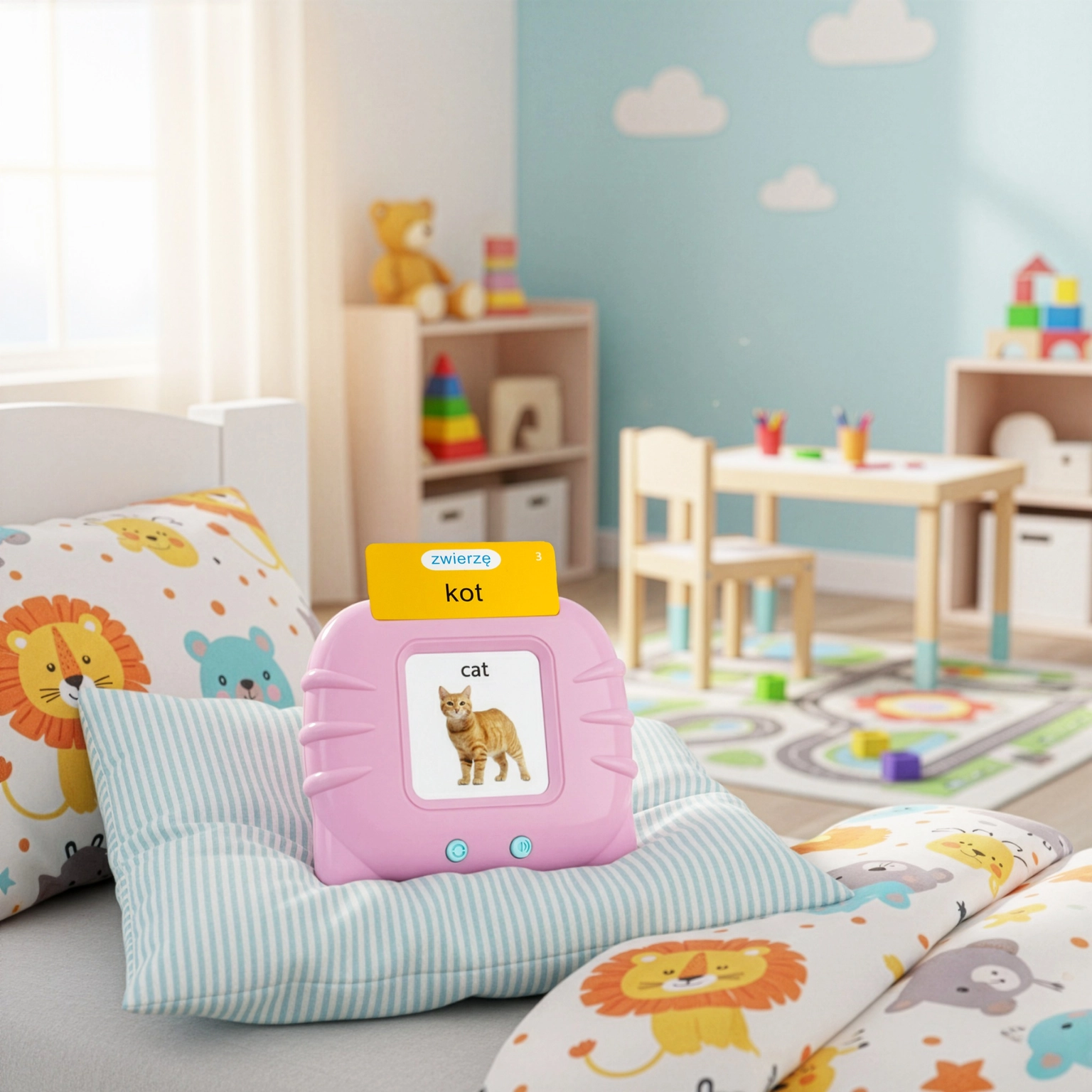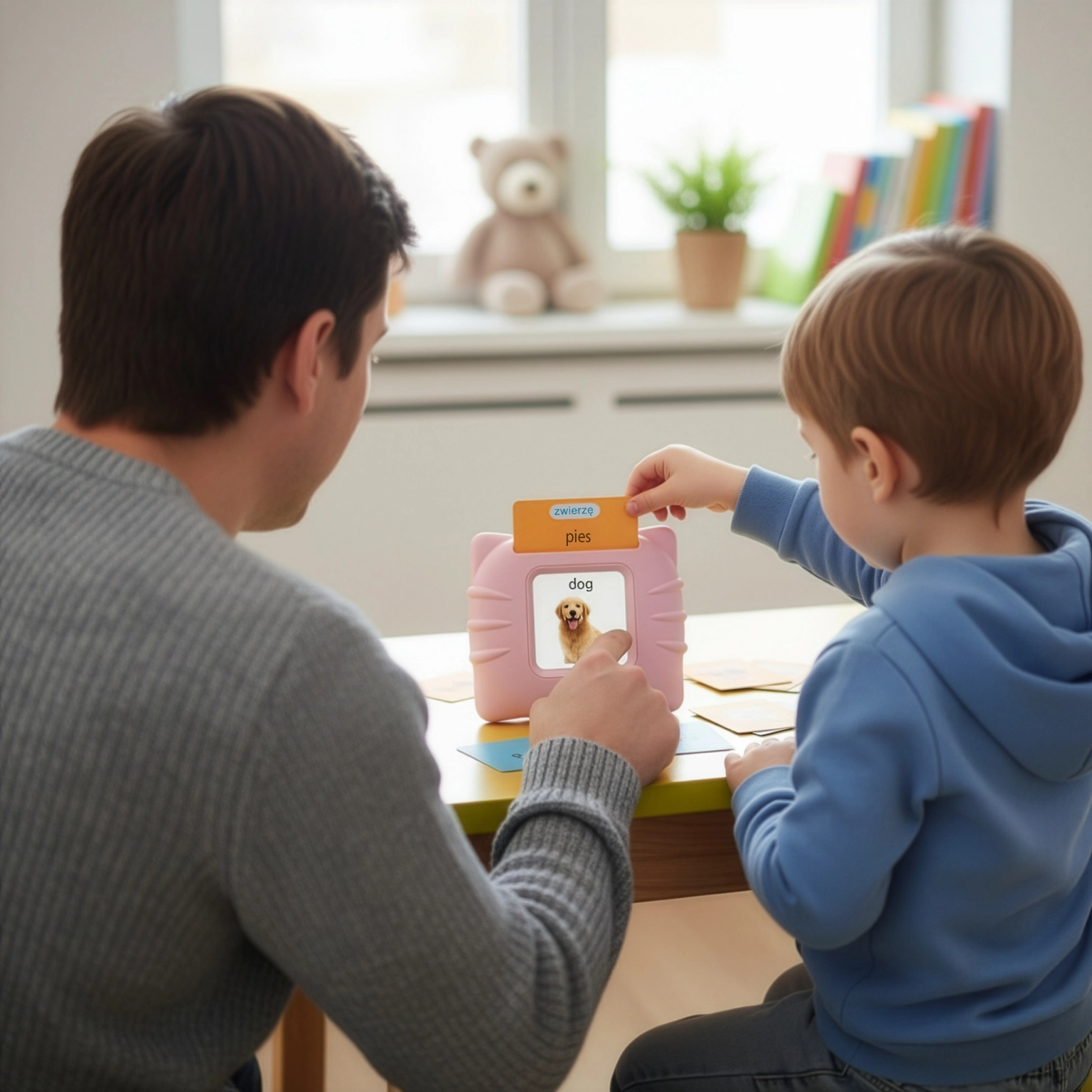 Using an educational reader is not just about learning a language, but also about exercising memory, concentration, and logical thinking. Intuitive operation means that the child can choose cards themselves, repeat words, and control their learning. Playing together with a parent builds a bond, and in a peer group, the reader turns into an interactive game. Thanks to this, the child learns cooperation, communication, and gains new social skills.