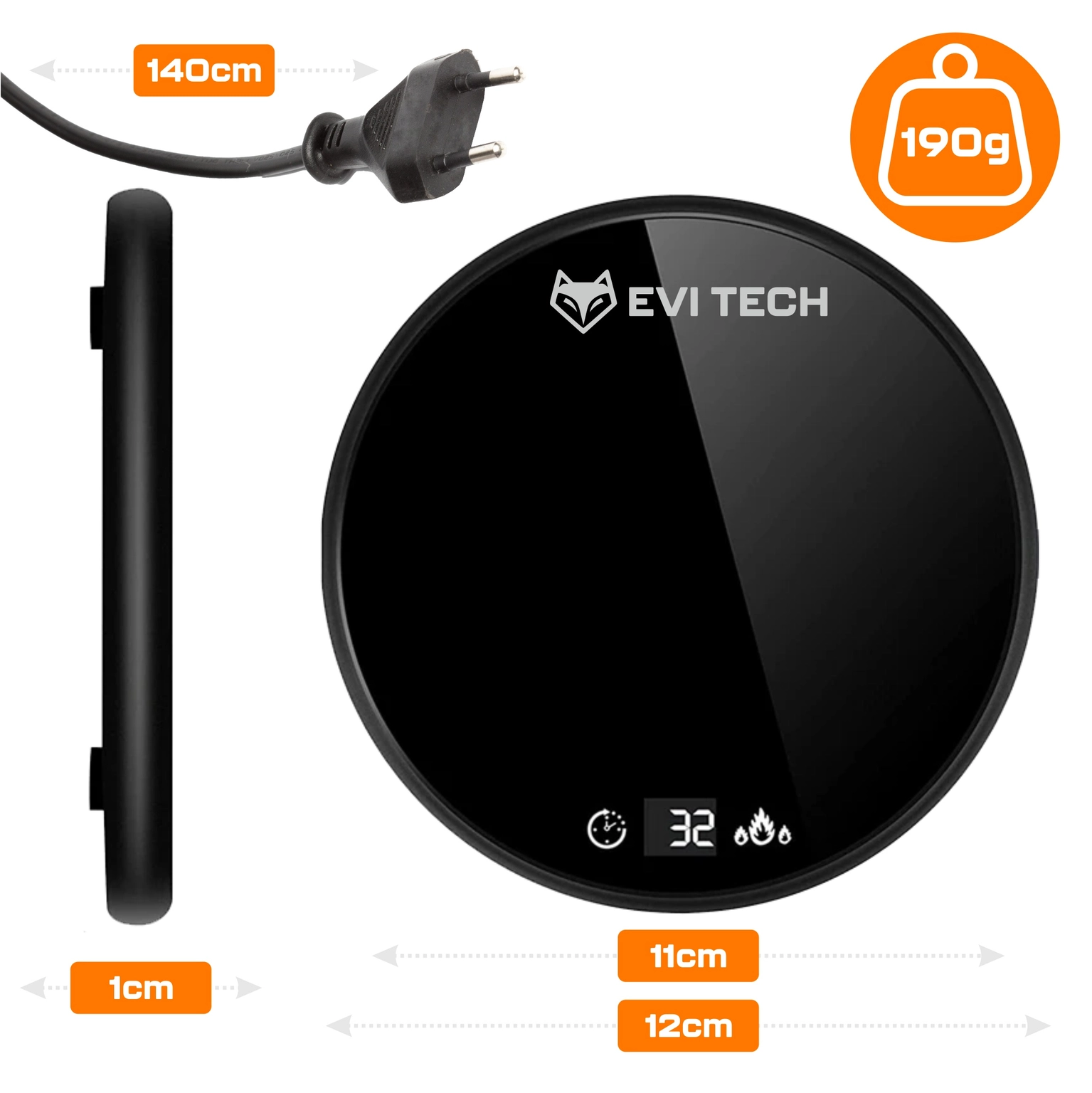 This device is designed to last for a long time. Tempered glass and sturdy ABS plastic make the warmer damage-resistant and easy to clean. Its elegant, minimalist design fits into any interior – from the office to the modern kitchen. Thanks to this, EVI TECH HEATSPOT is not only a functional device but also an aesthetic element of your everyday environment.
