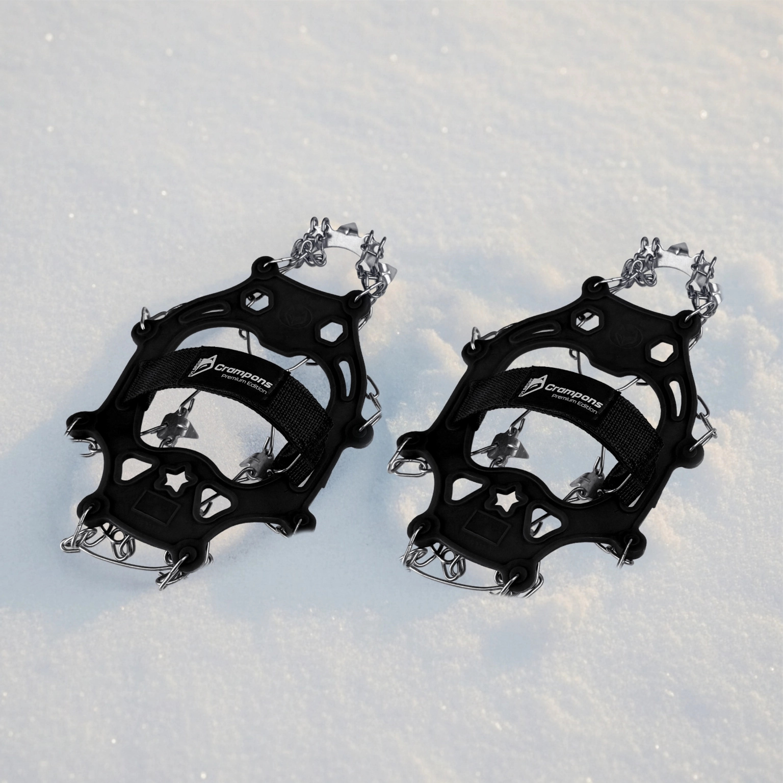 If you are READY FOR MORE, check out our crampon model: “Crampons Pro+”, which additionally features a special chain system with reinforced hinges, heel stabilization, and 13 steel spikes!