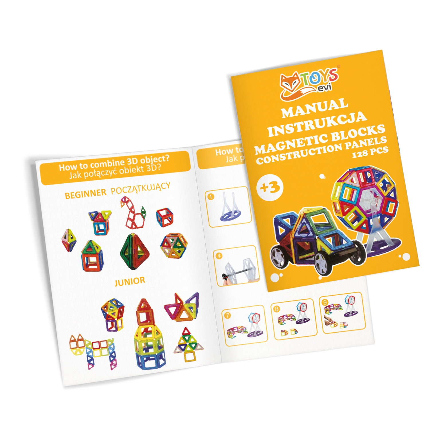 The EVI TOYS – MAGNETIC 128 set is a combination of rich content and highest quality workmanship. Each element has been created with safety and children's comfort in mind.