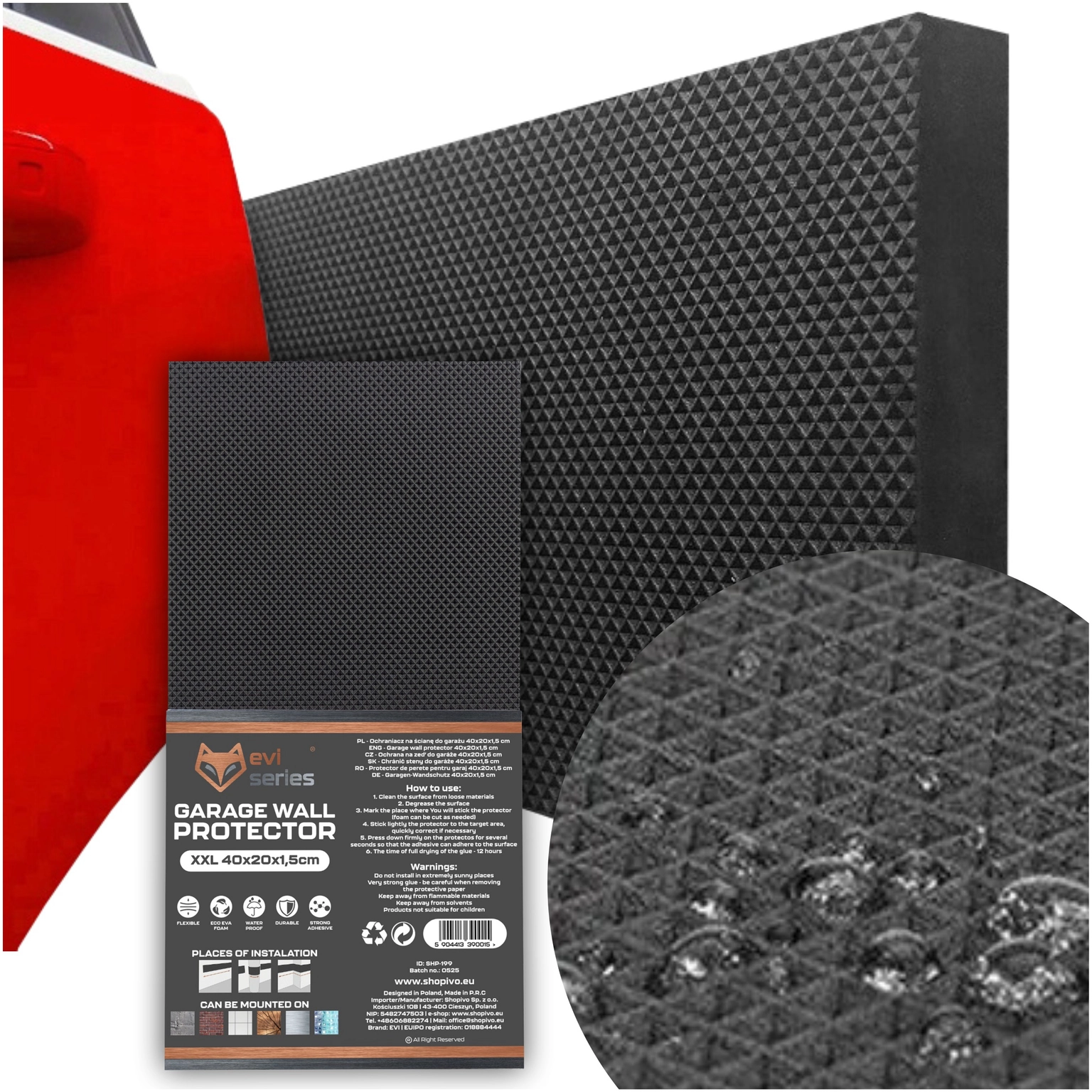 Forget about dents and scratches in the garage! The EVI SERIES PROTECTOR bumper is a practical protective mat that you can stick to almost any surface to protect your car and walls from damage. Ideal for tight garages, underground parking lots, and narrow parking spaces. Thick, moisture-resistant EVA foam guarantees durability and effective impact absorption. Simple installation thanks to strong self-adhesive glue.