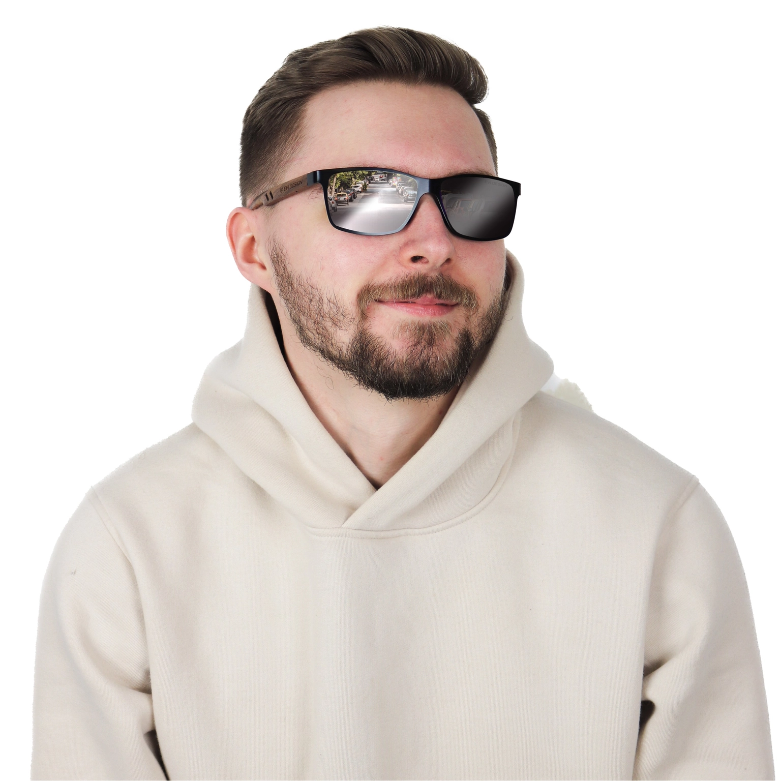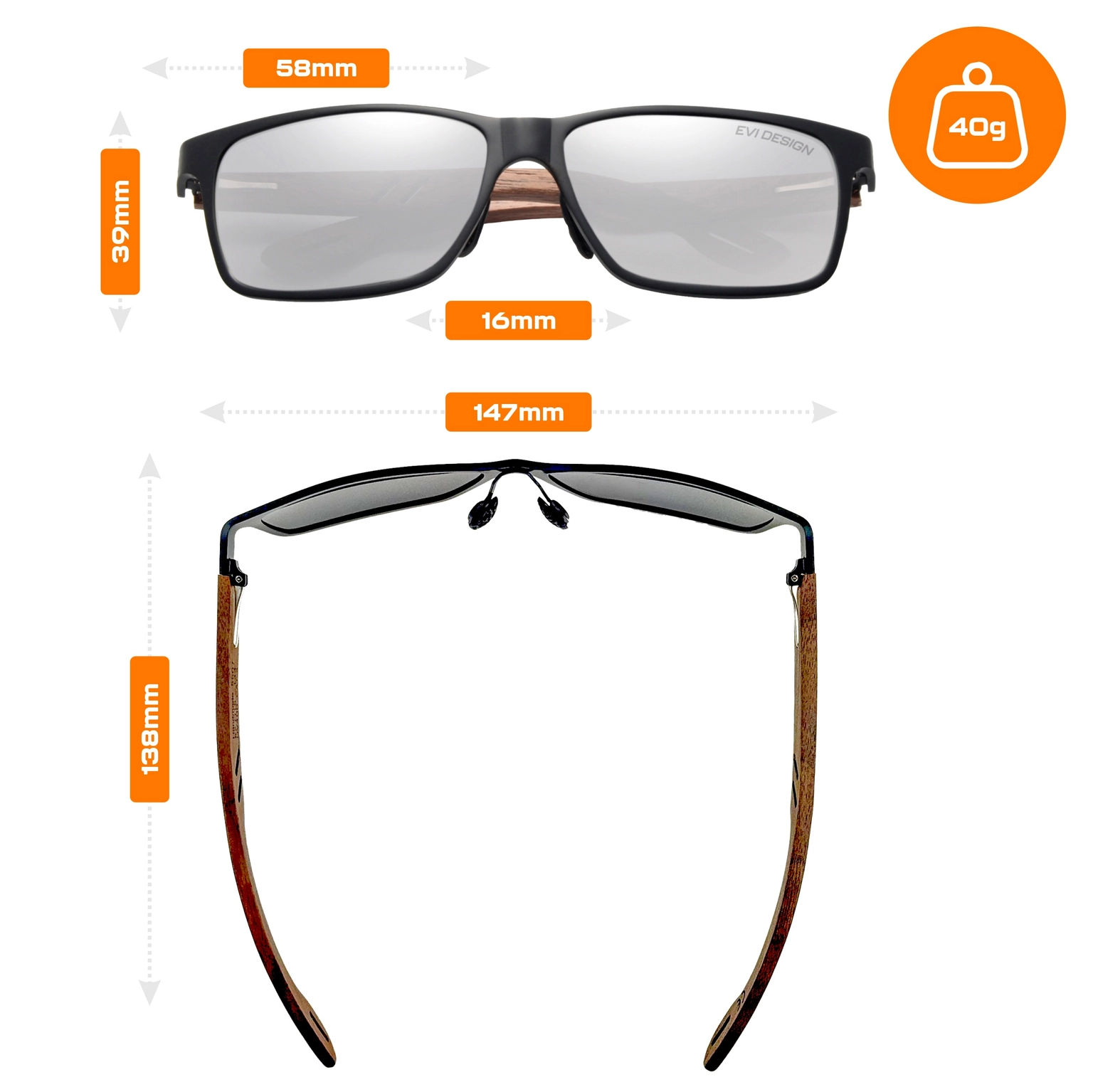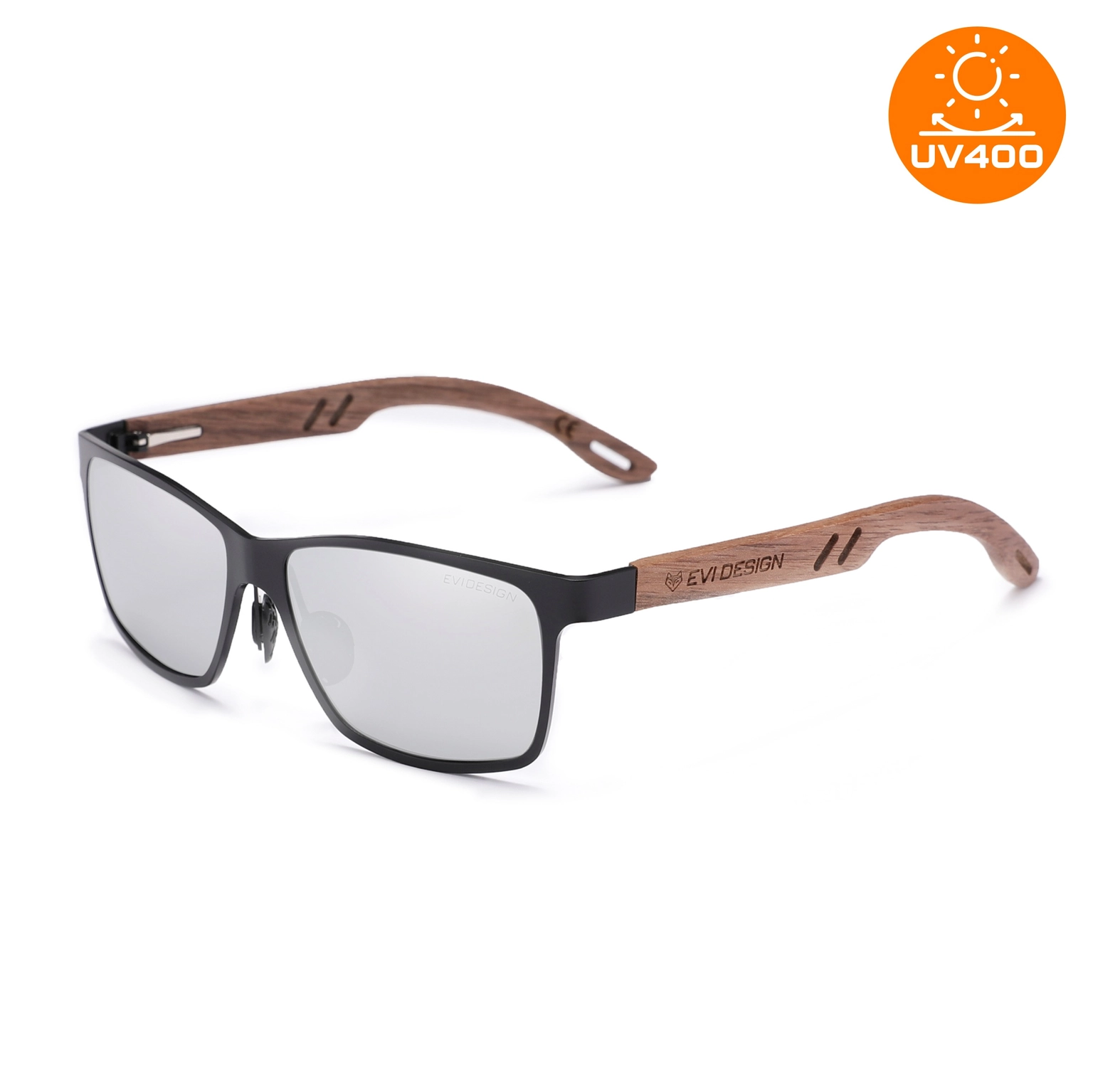 Stylish EVI DESIGN NERDY sunglasses are the perfect combination of functionality and elegance. Equipped with polarized lenses with a UV400 filter, they effectively eliminate glare and 100% protect your eyes from harmful radiation. Natural wooden temples, combined with a lightweight aluminum frame, create a unique, modern design, and the dark lenses add character. This is an excellent choice for those looking for an accessory that combines fashion, ecology, and comfort for everyday wear, regardless of the occasion.