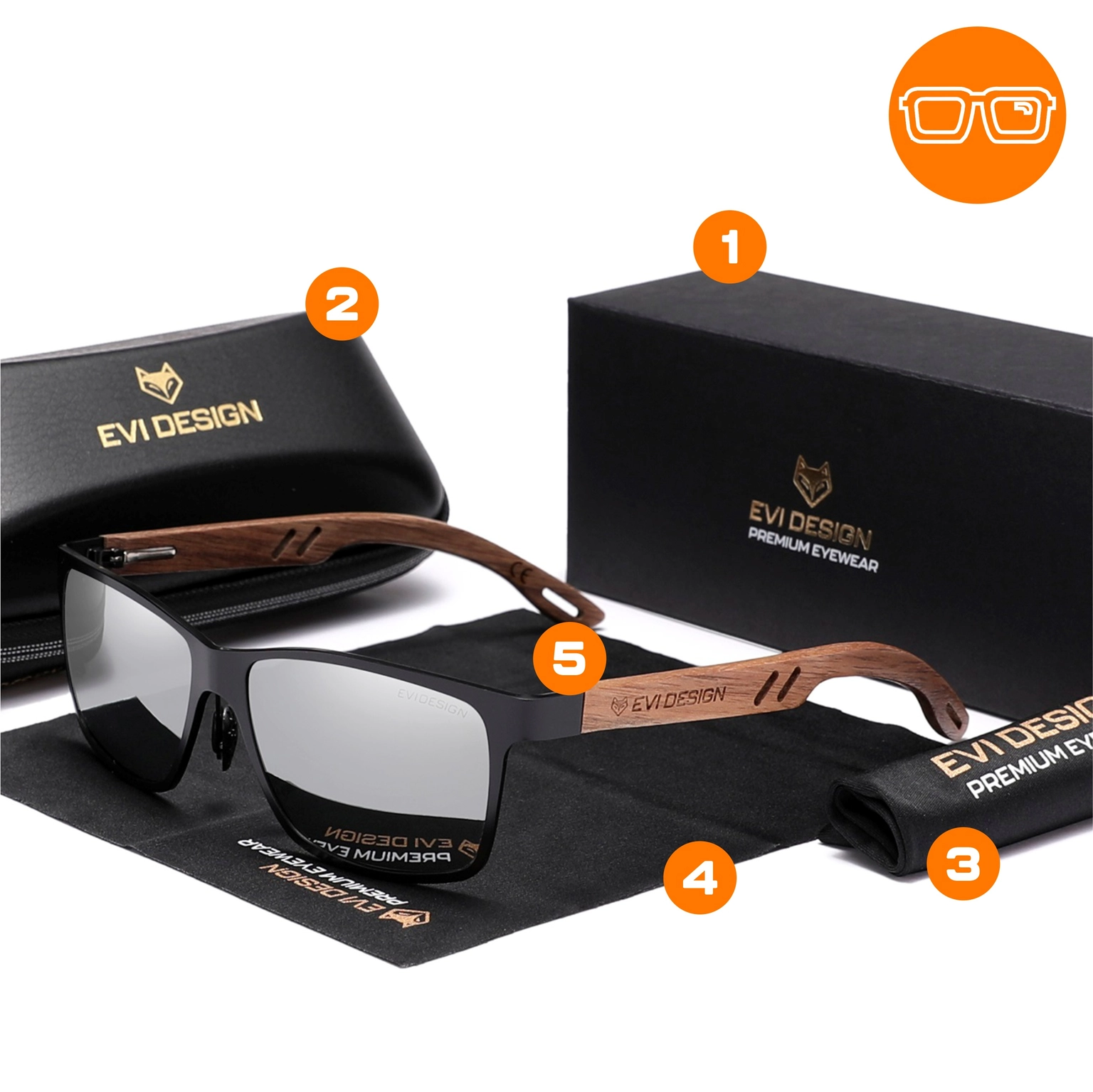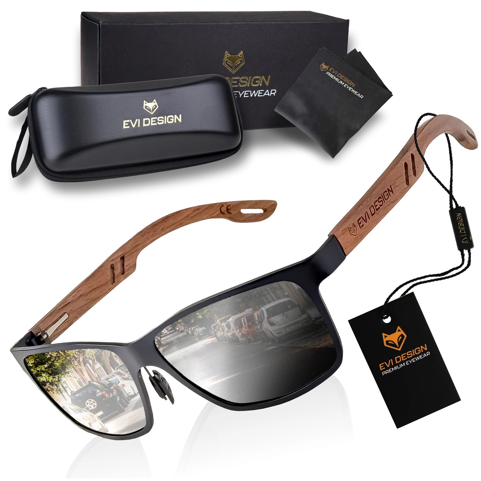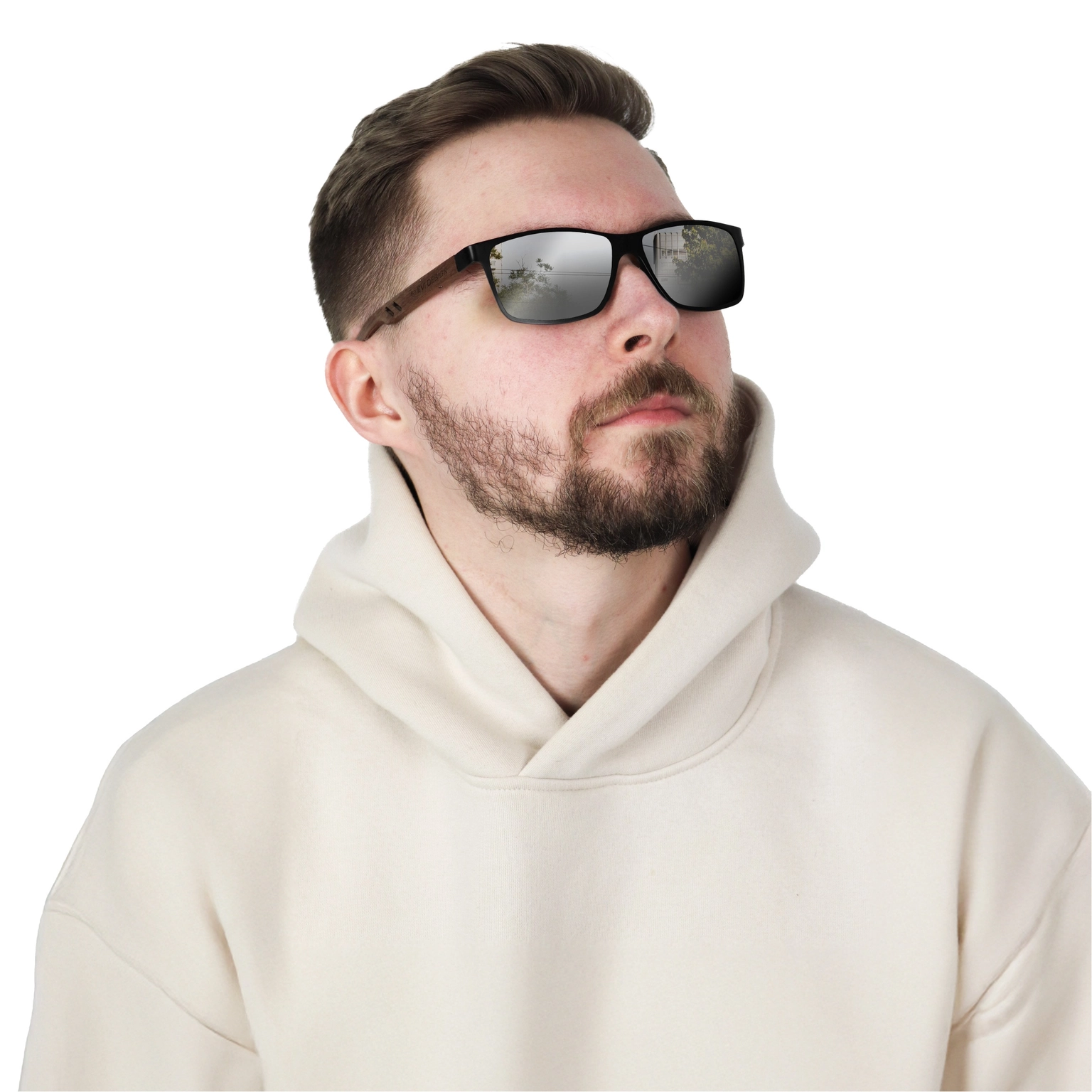 ☑️ Modern design – a combination of metal, wood, and silver mirror lenses creates a stylish, universal look.