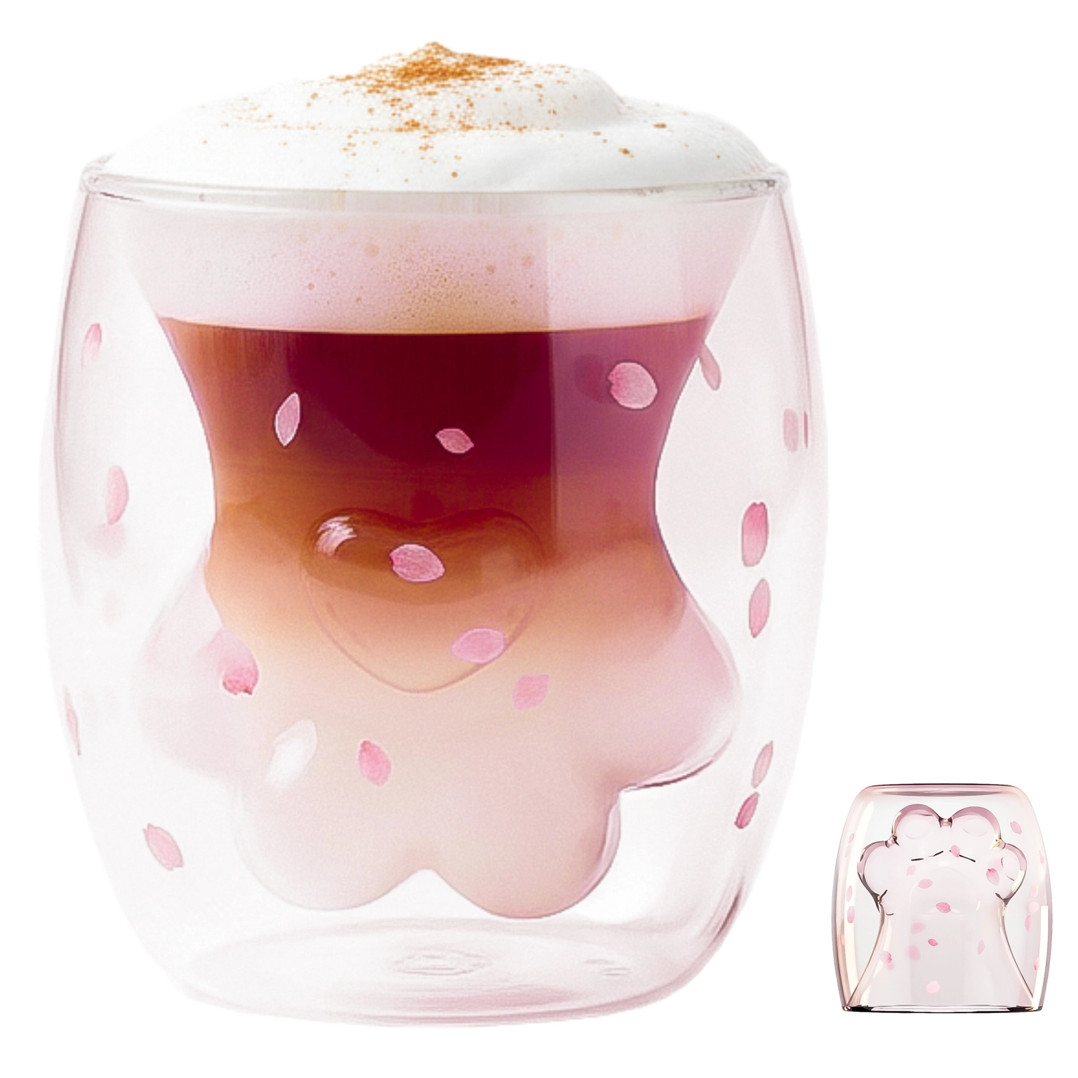 THERMAL GLASS CAT PAW double wall COFFEE TEA MUG 250ML