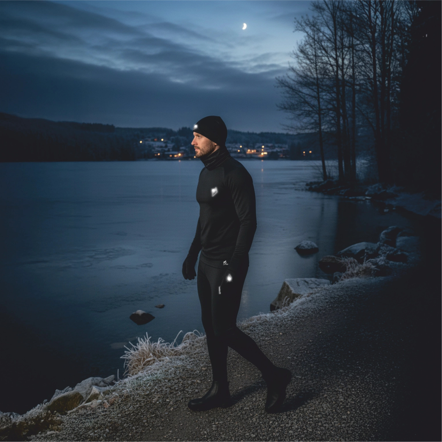 Yes, the reflective logo enhances visibility when running or walking after dark, increasing user safety.
