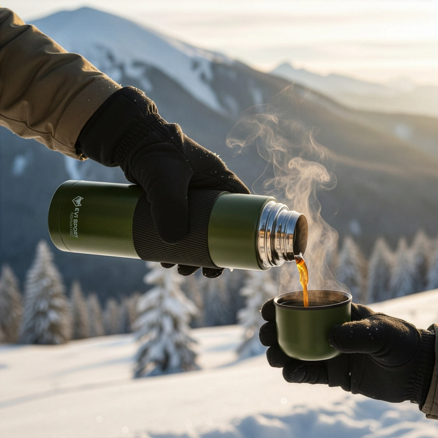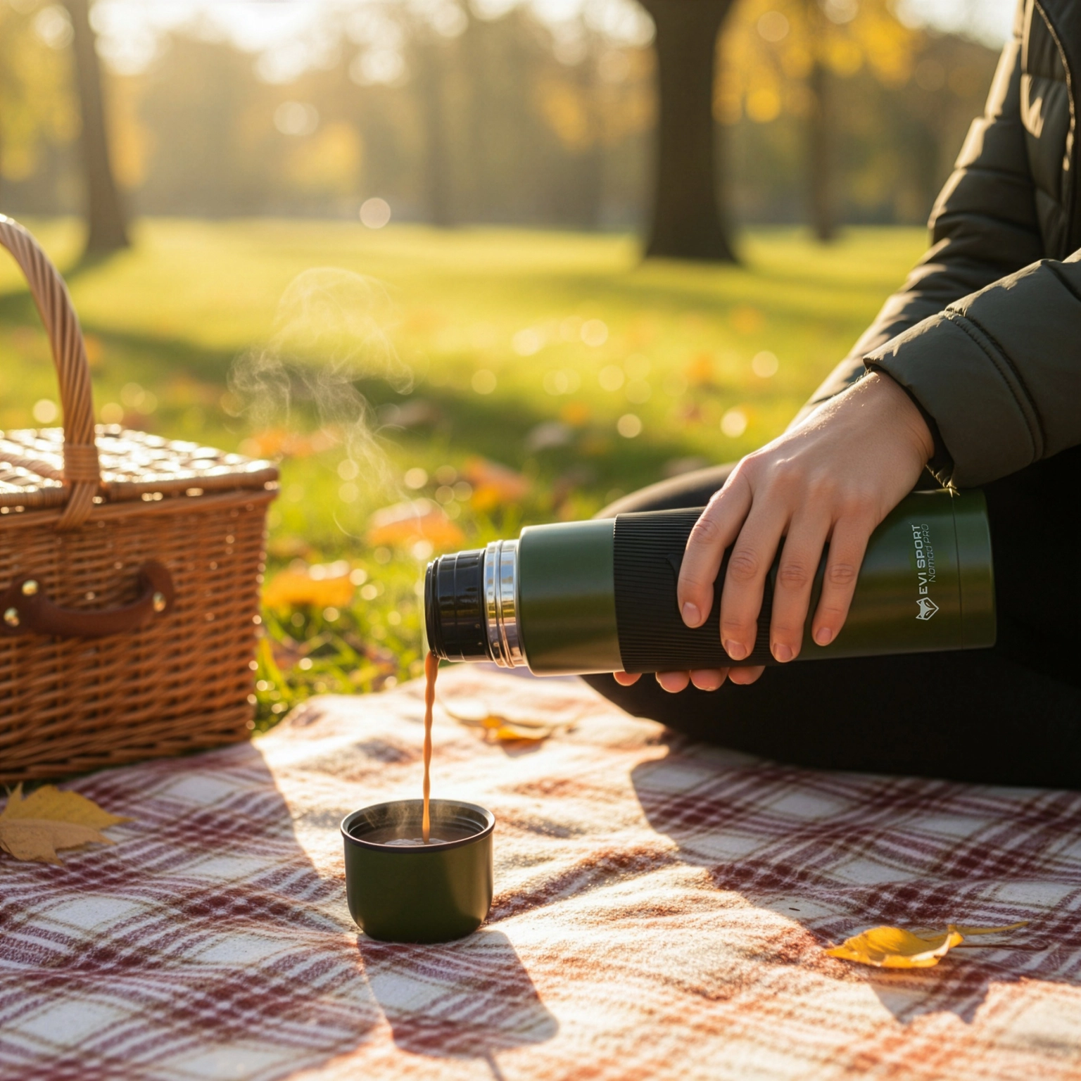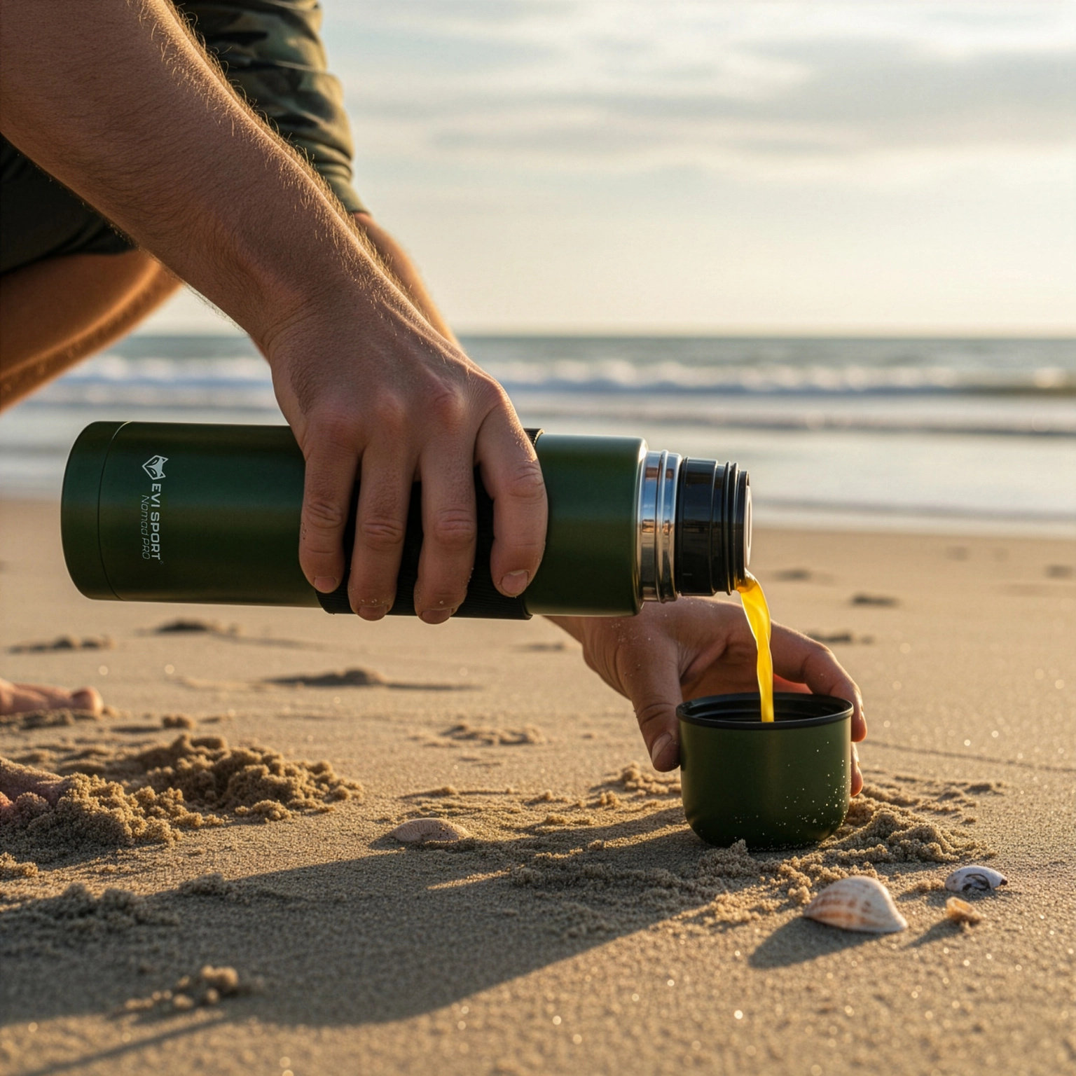 ✔️ On a trip – the large 1-liter capacity and vacuum technology allow it to keep drinks hot or cold for up to 24 hours, making the thermos indispensable for longer journeys,