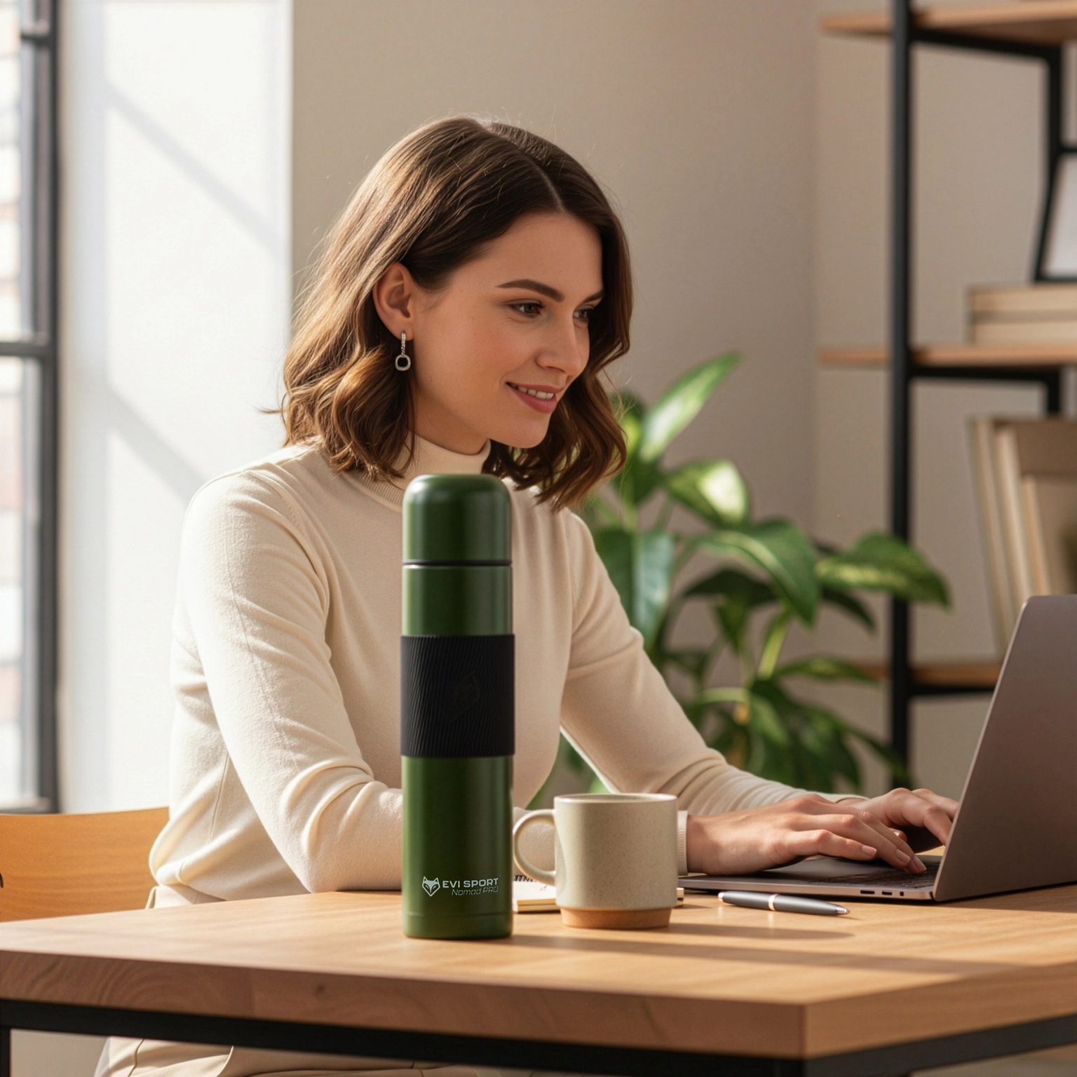 ✔️ At work – the modern and elegant design makes the thermos perfectly suited for the everyday office environment, ensuring comfort and safety of use.