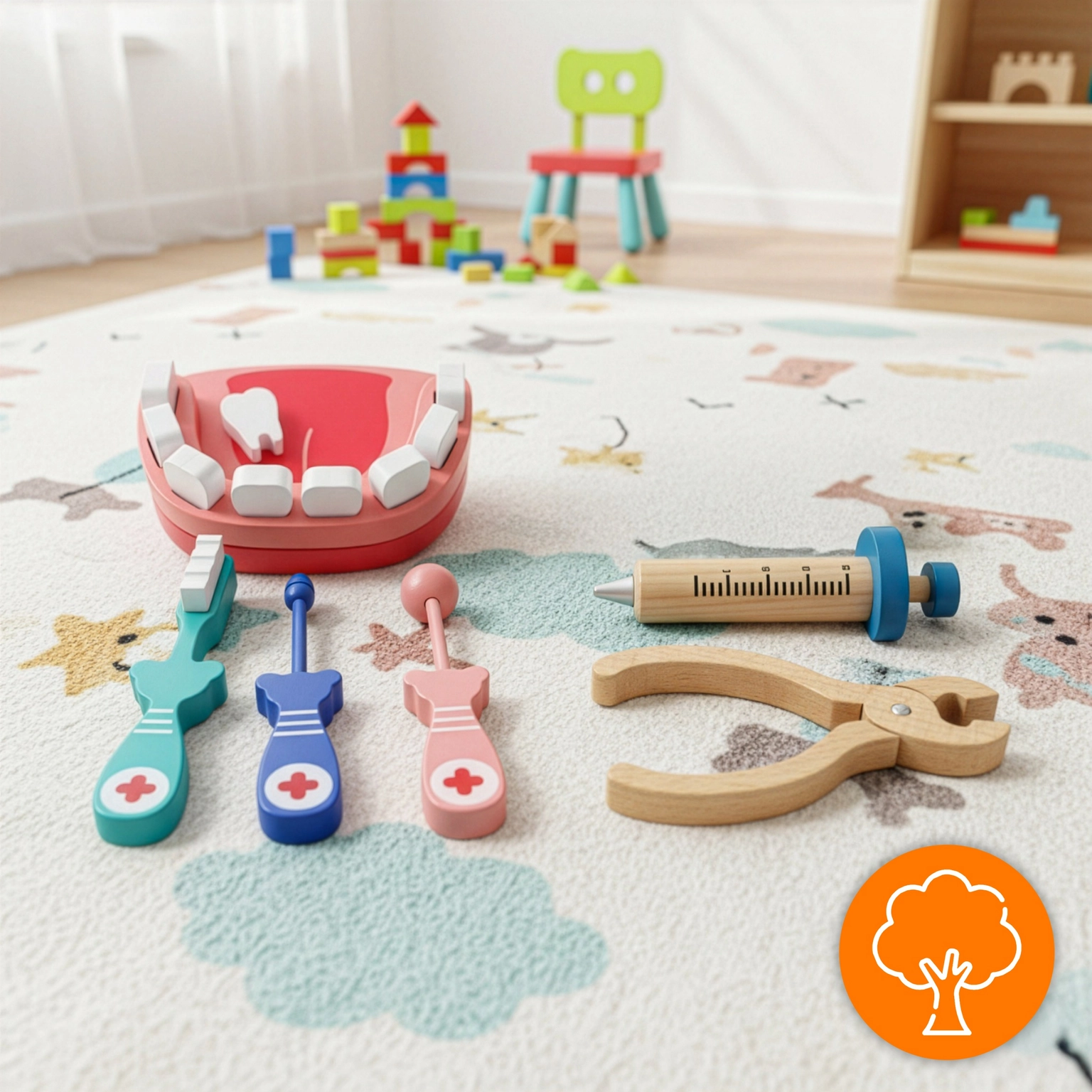 Drewniany zestaw MINI DOCTOR od EVI TOYS wyróżnia się na tle innych zabawek medycznych dzięki połączeniu trwałości, bezpieczeństwa i realistycznych akcesoriów.