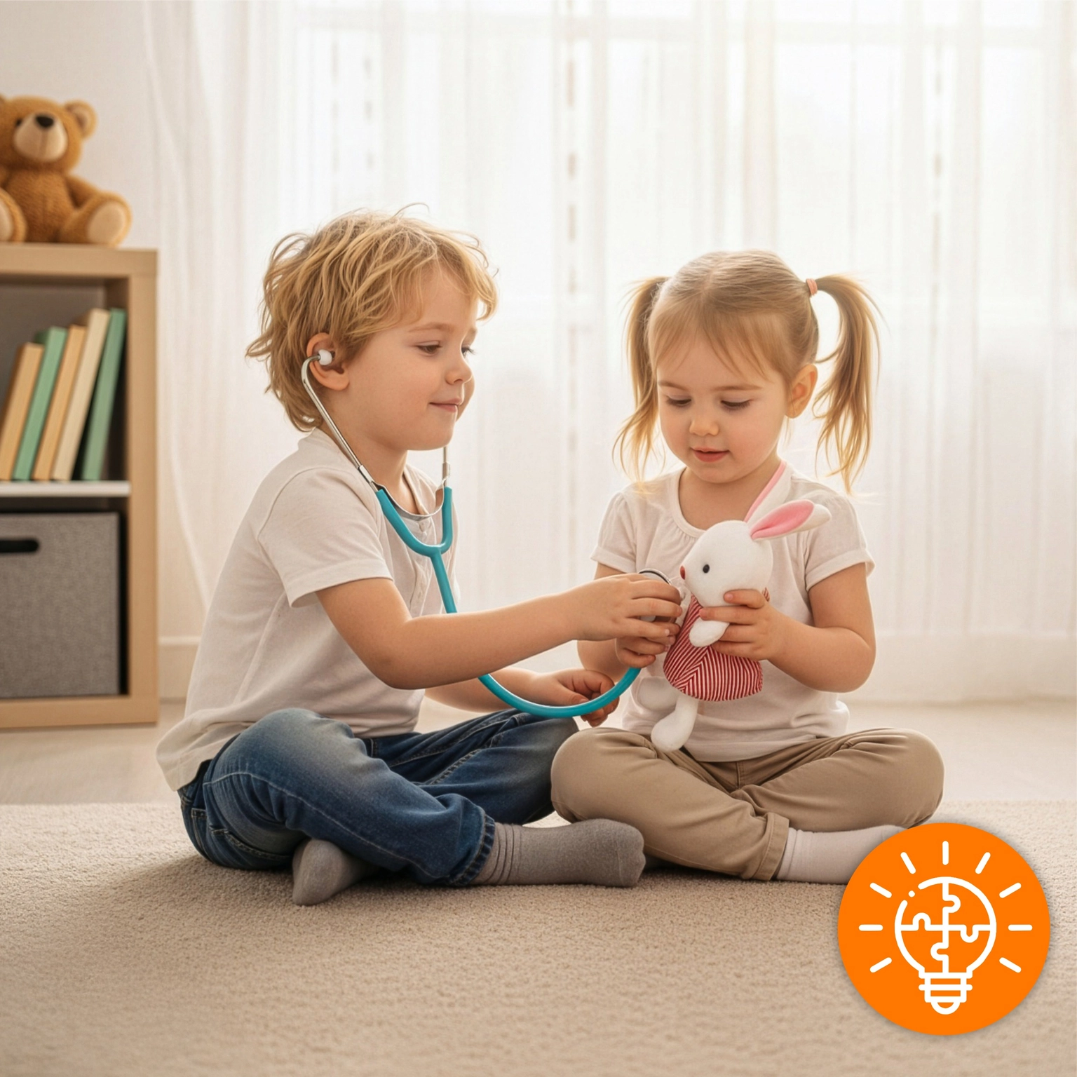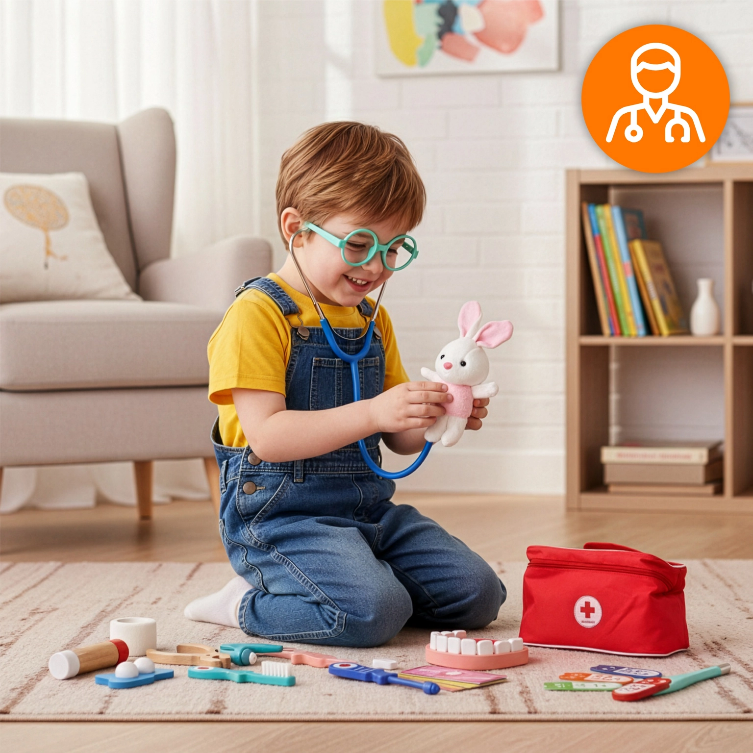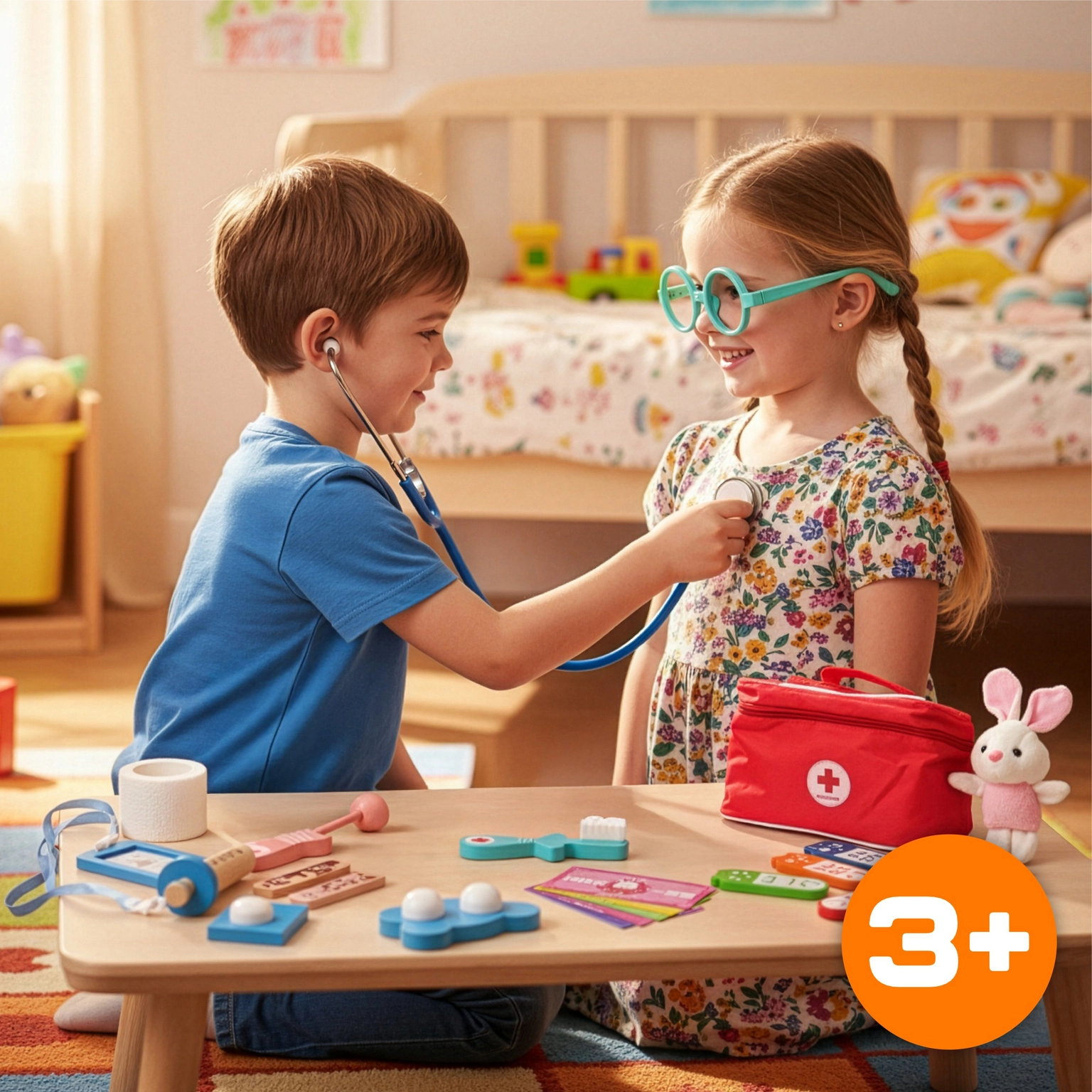 Zabawa w lekarza to coś więcej niż tylko rozrywka – to sposób na rozwój. Drewniany zestaw MINI DOCTOR pozwala dzieciom poznawać podstawy medycyny i uczy empatii. Dzięki różnorodnym akcesoriom, maluchy uczą się rozpoznawać objawy, badać pacjentów i „prowadzić gabinet”. To świetna okazja, aby rozwijać wyobraźnię, kreatywność oraz myślenie przyczynowo-skutkowe, a przy tym dobrze się bawić. Zestaw idealnie nadaje się do zabaw w pojedynkę lub w grupie.