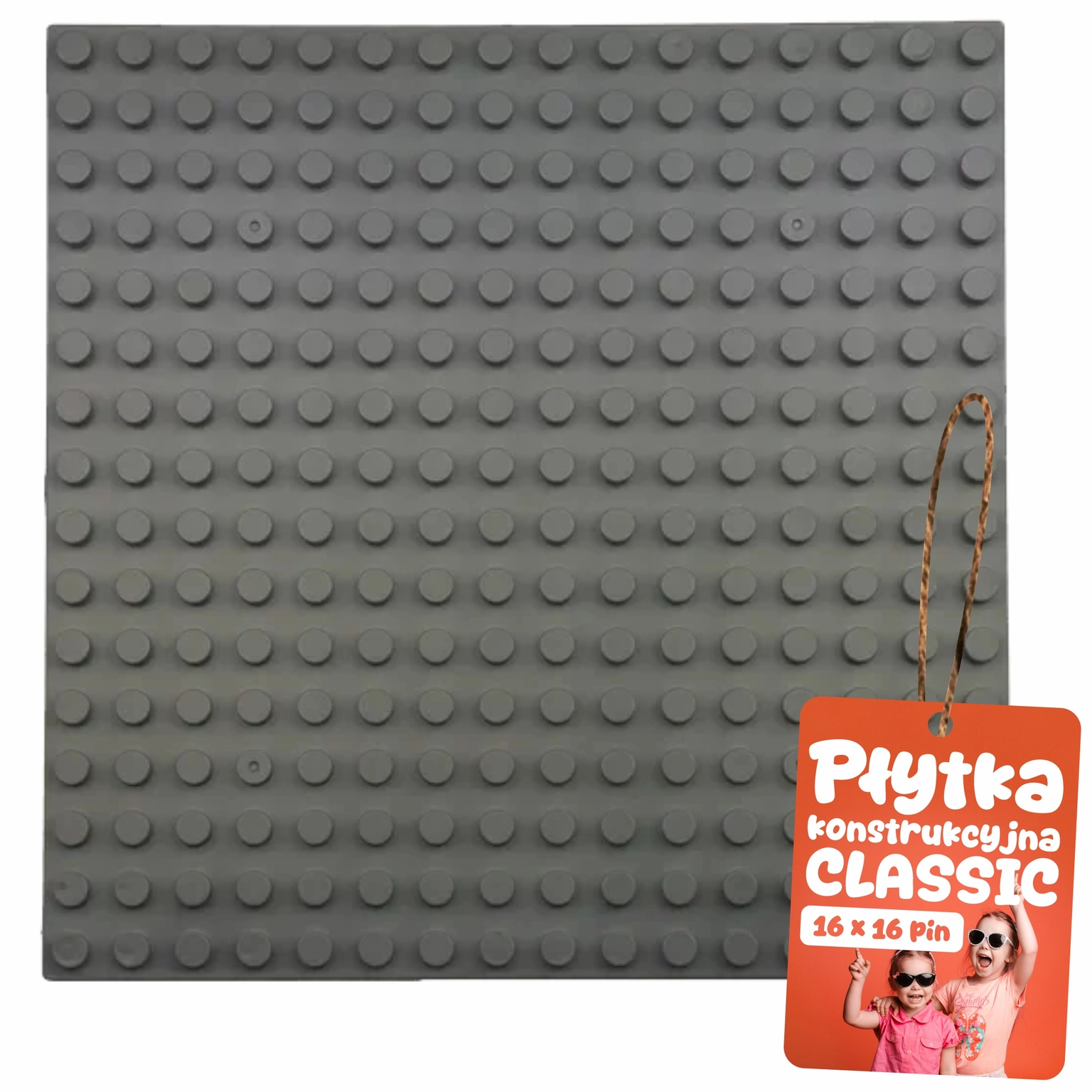 PŁYTKA KONSTRUKCYJNA do klocków 16x16 podstawka zabawka kreatywna XL | CIEMNOSZARA