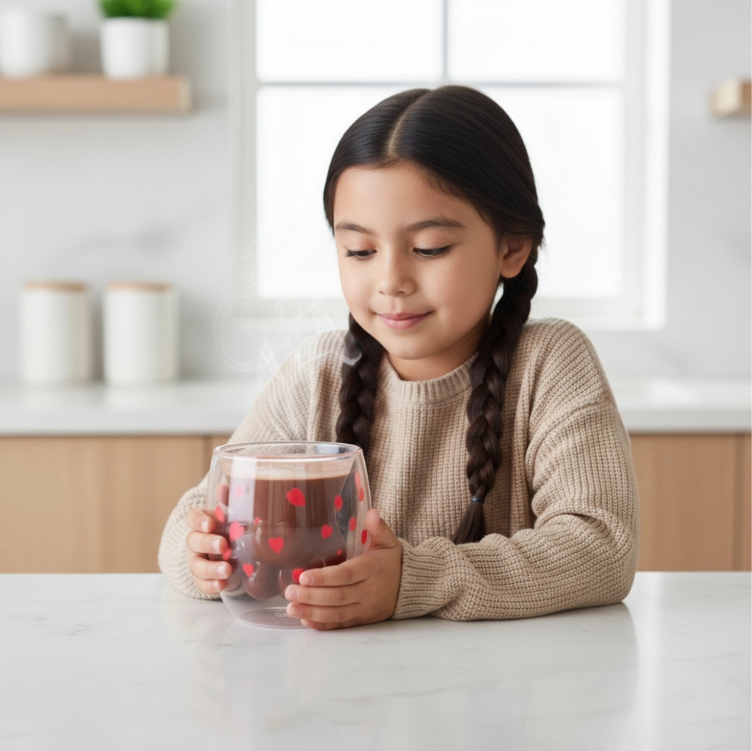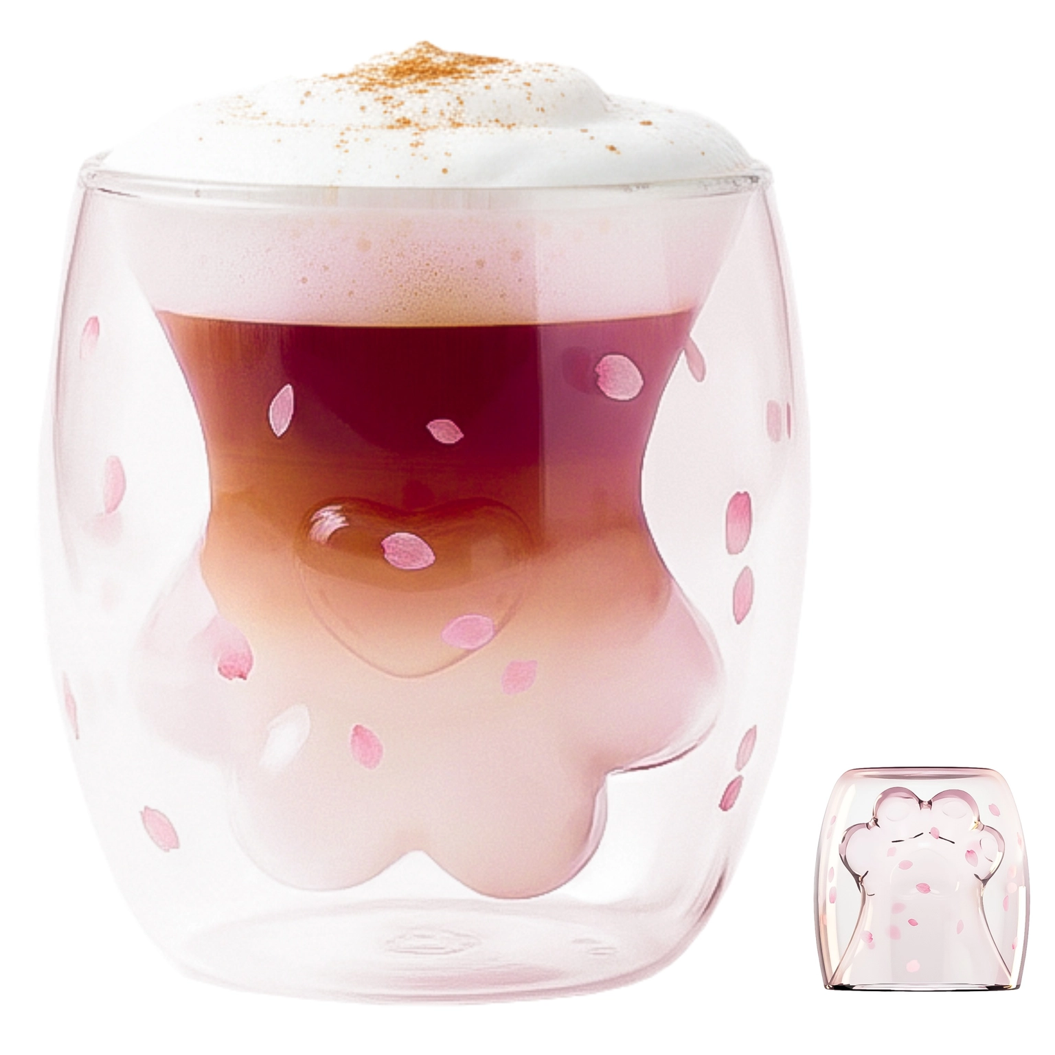 ✔️ 1 x szklanka termiczna KOCIA ŁAPKA – pojemność 250 ml, szkło borokrzemowe z podwójnymi ściankami