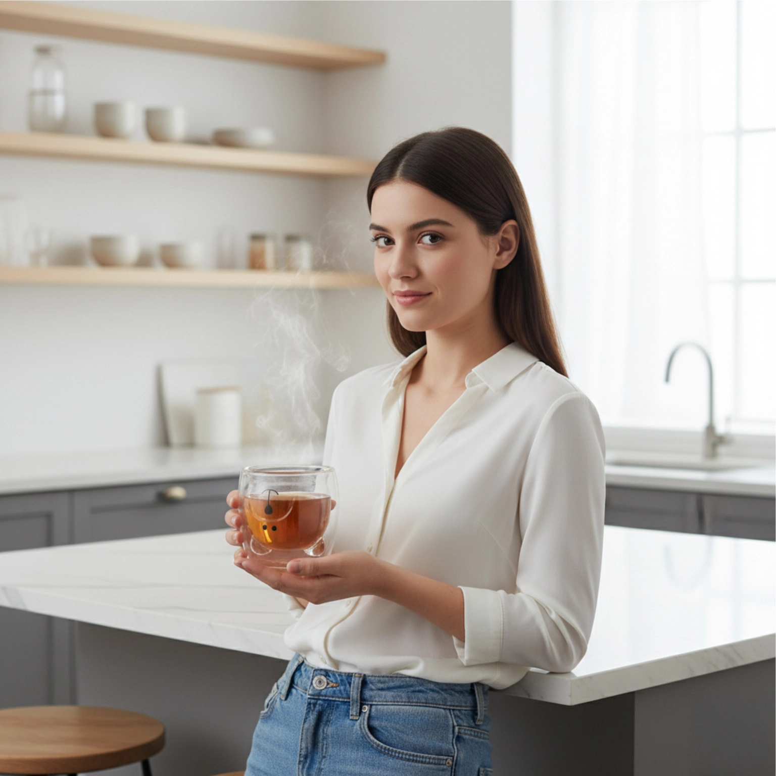 ☑️ Bezpieczne użytkowanie – dzięki certyfikatowi do kontaktu z żywnością możesz pić bez obaw o zdrowie, a szkło jest wolne od BPA i szkodliwych substancji.