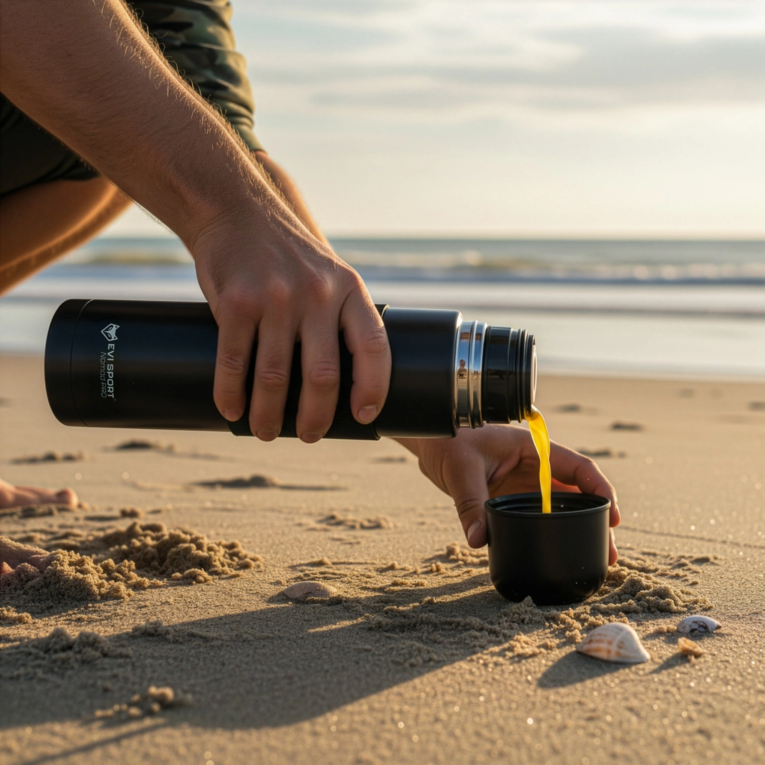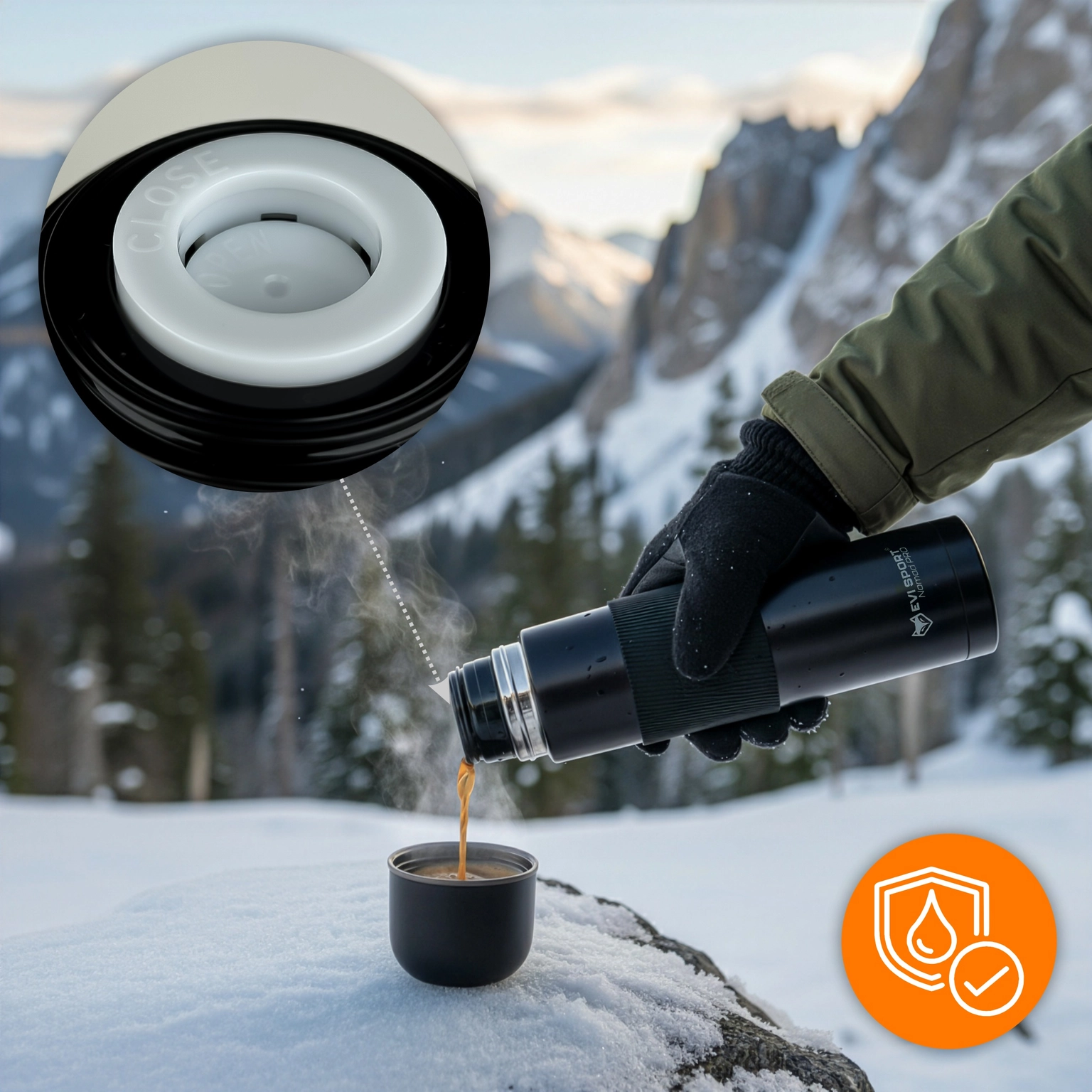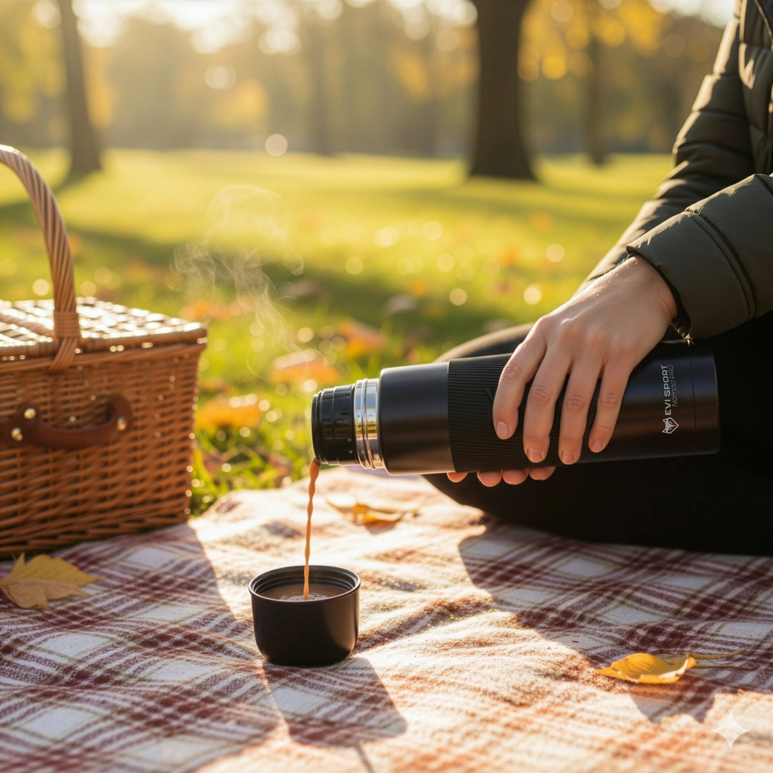 ✔️ W podróży – duża pojemność 1 litra i technologia próżniowa umożliwiają utrzymanie ciepła lub chłodu nawet do 24 godzin, co czyni termos niezastąpionym podczas dłuższych wyjazdów,